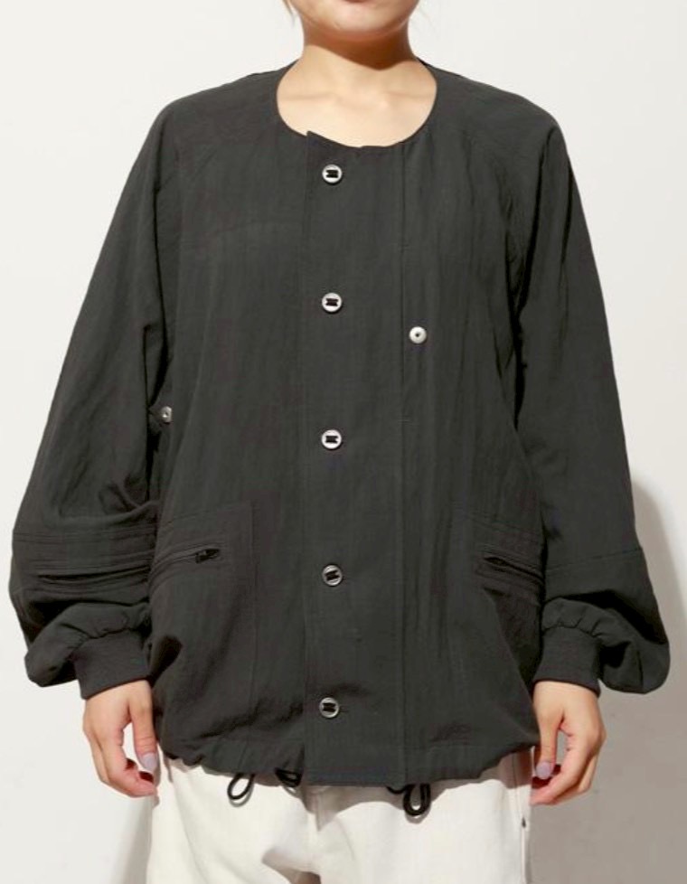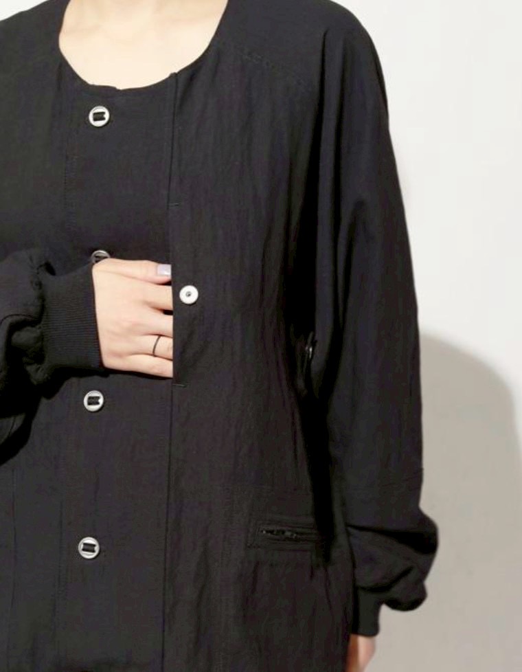 フライト系ミリタリーディテールも取り入れ、パラシュートボタンやコードタブ、ファスナー付きポケットなど遊び心と実用性を両立。