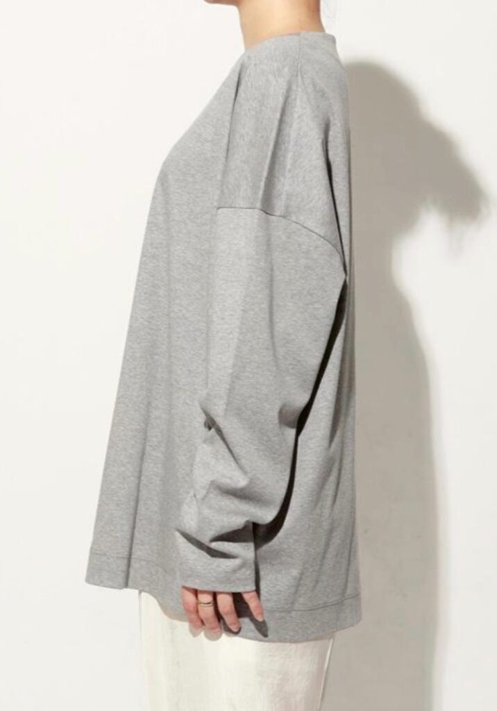 ジャケットやカーディガンのインナーにはもちろん、一枚でも品よく着られるデザインで、毎日のコーディネートに自然に溶け込みます。