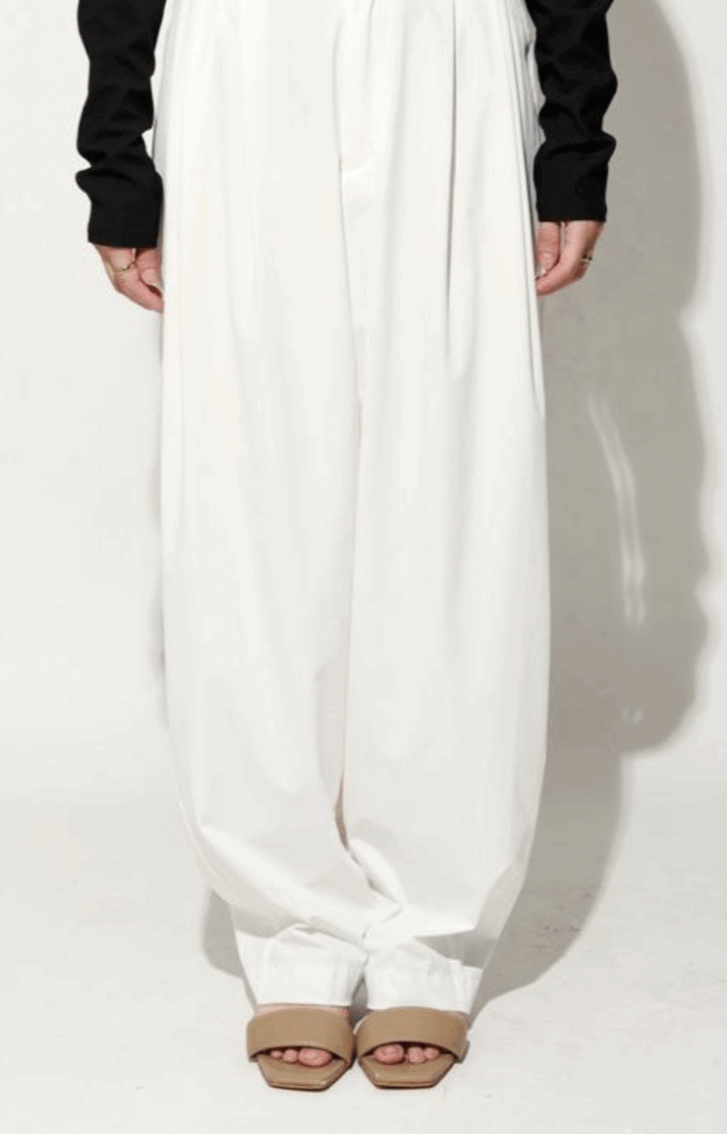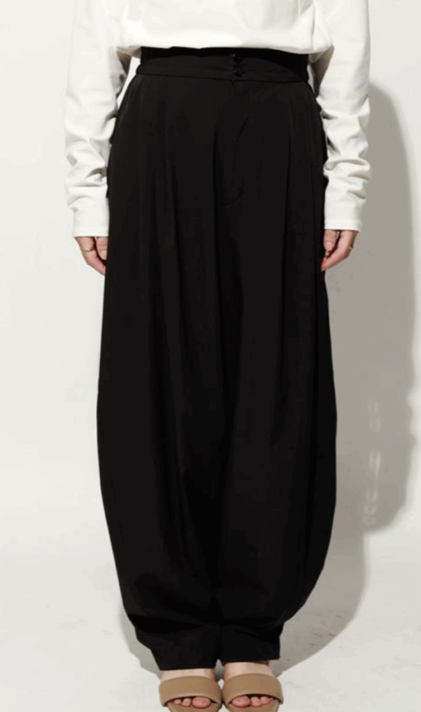 体型カバーも洗練も叶える、万能コクーンパンツ。