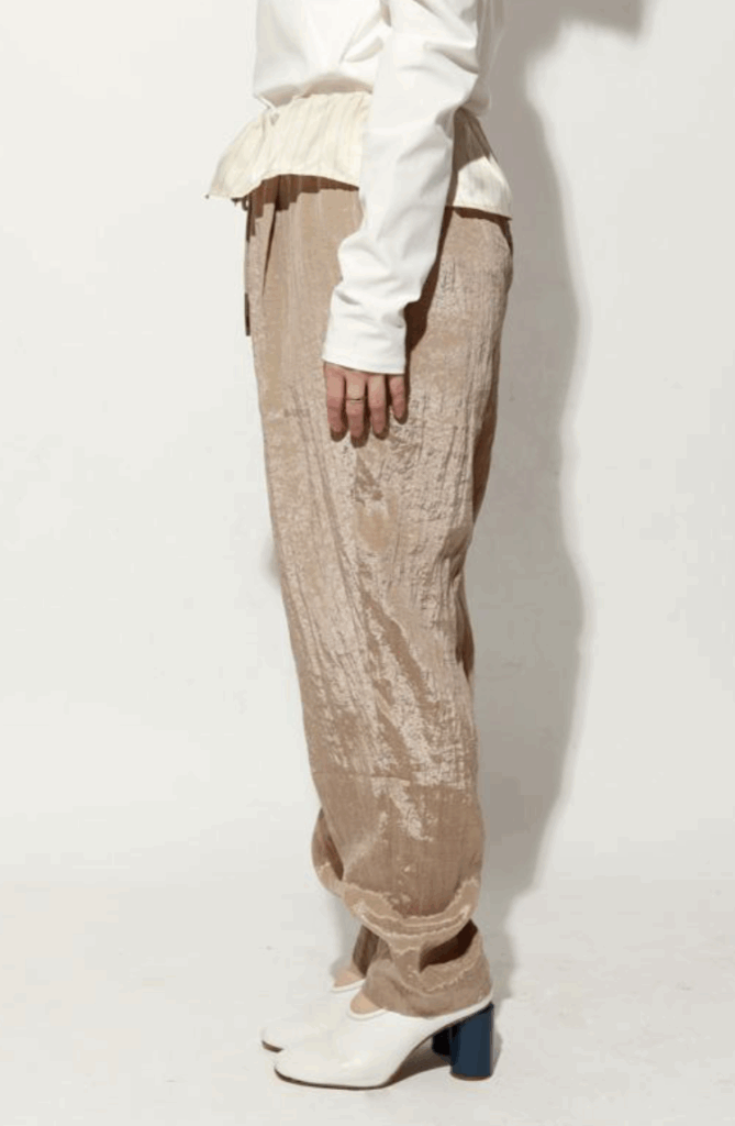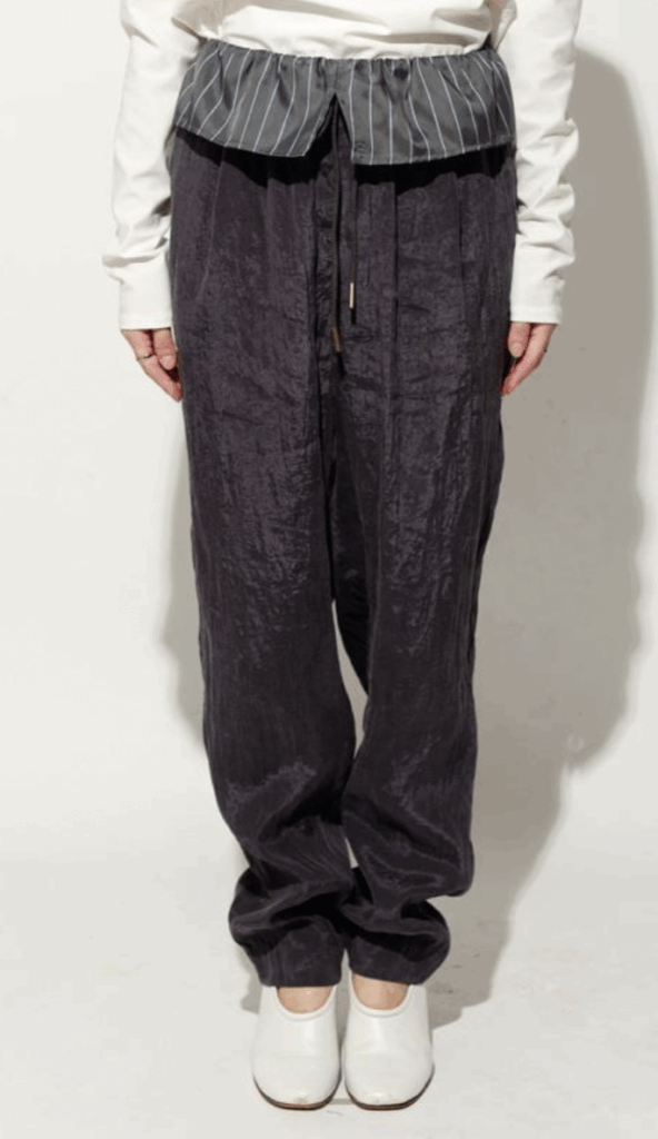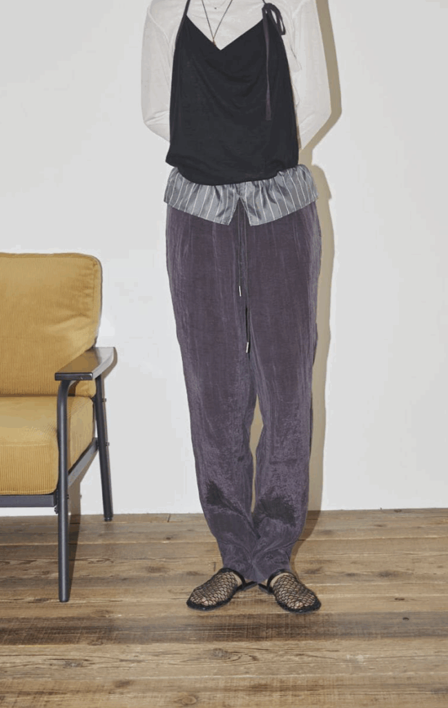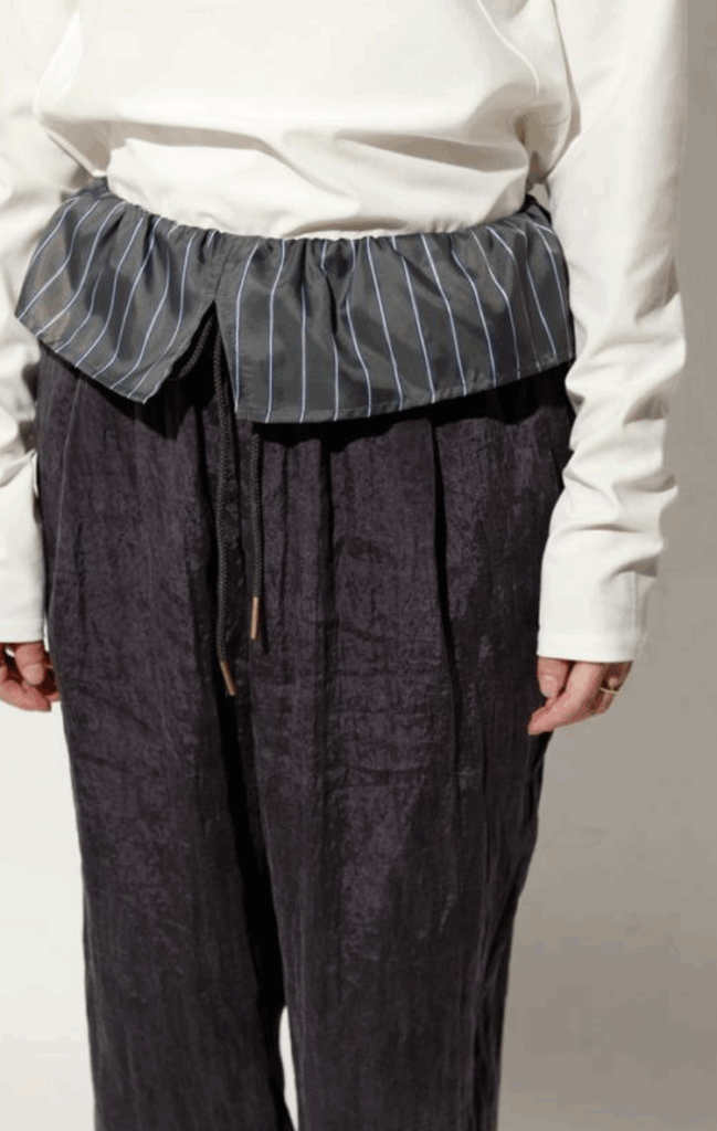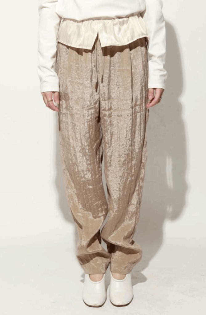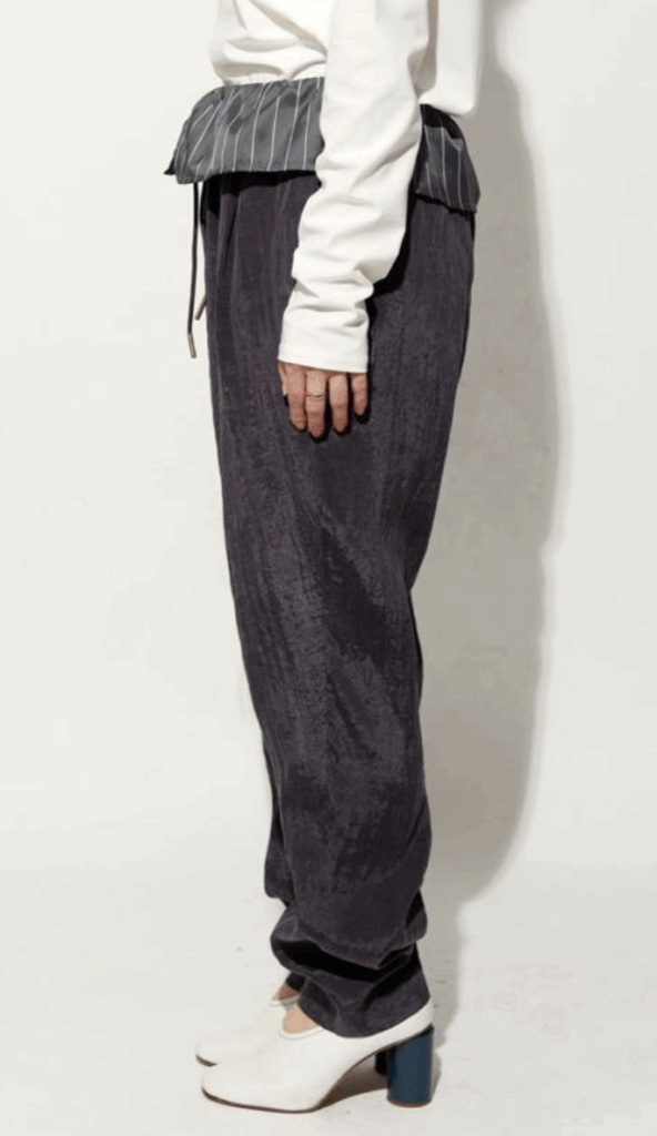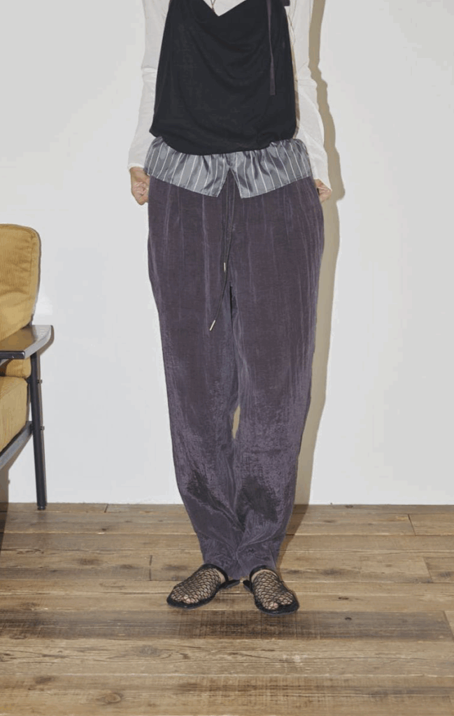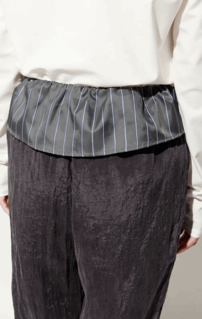 美しいテーパードラインに、ウエスト部分の別布デザインがアクセントを効かせたアイテム。