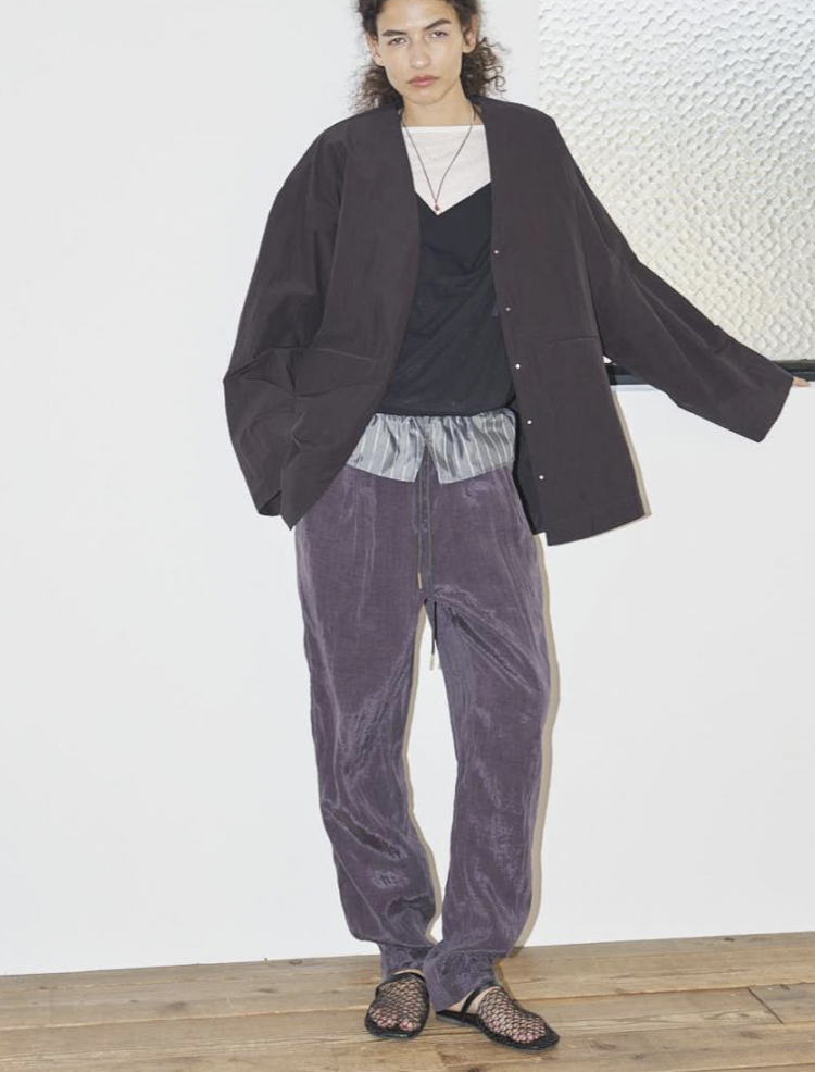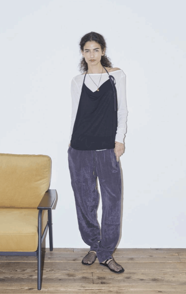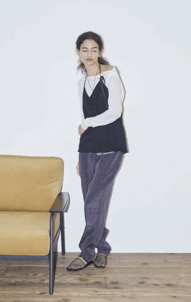 素材にはフィブリル加工を施し、肌に触れるたびにひんやりと心地よいタッチを実現。さらに上品な光沢感が加わり、洗練された印象を演出します。