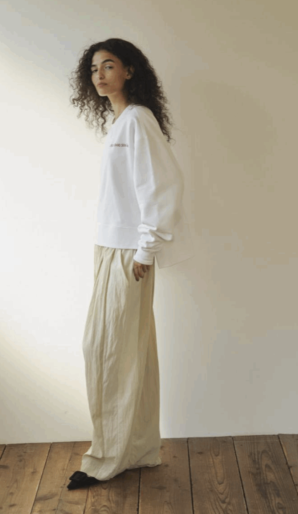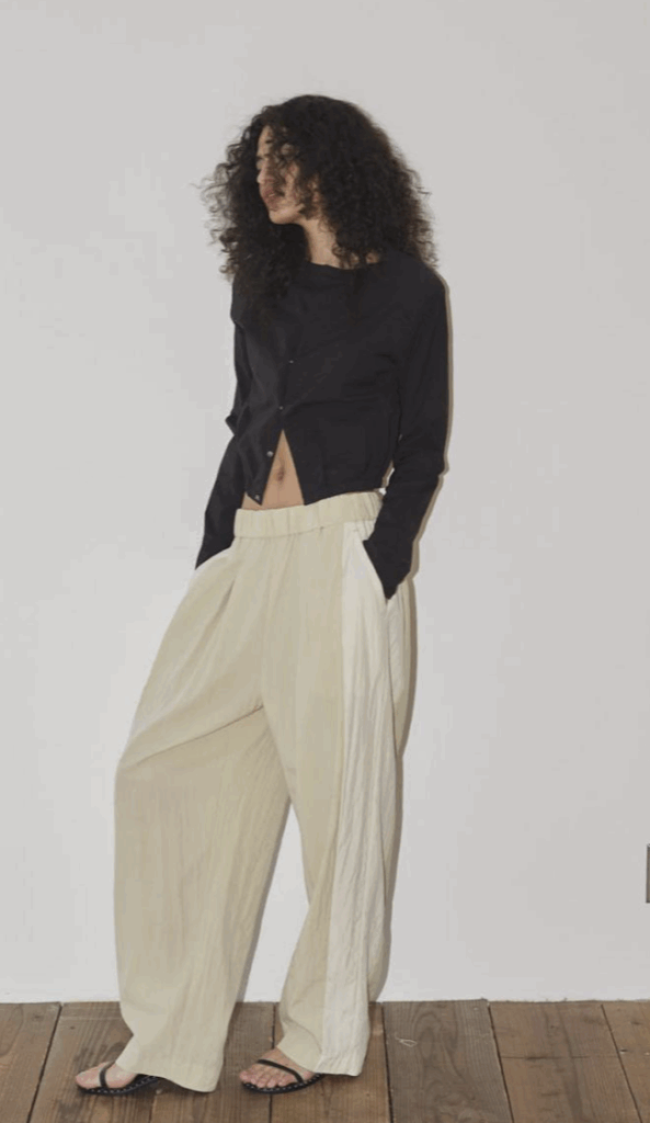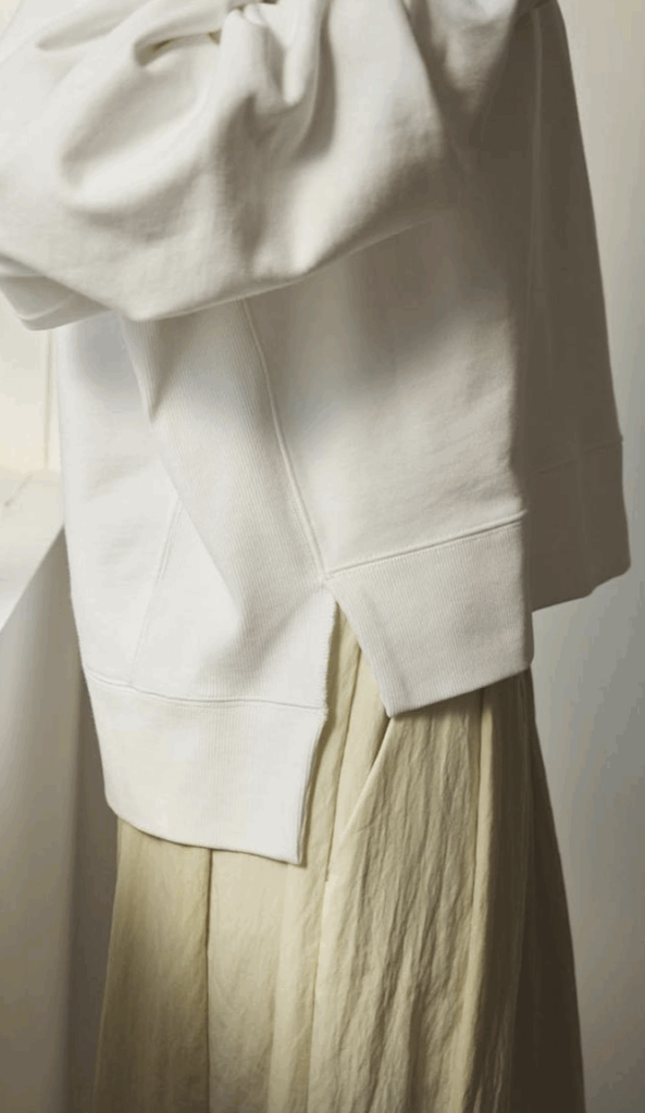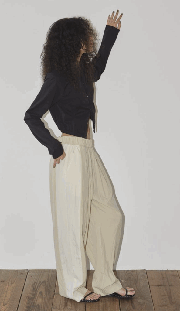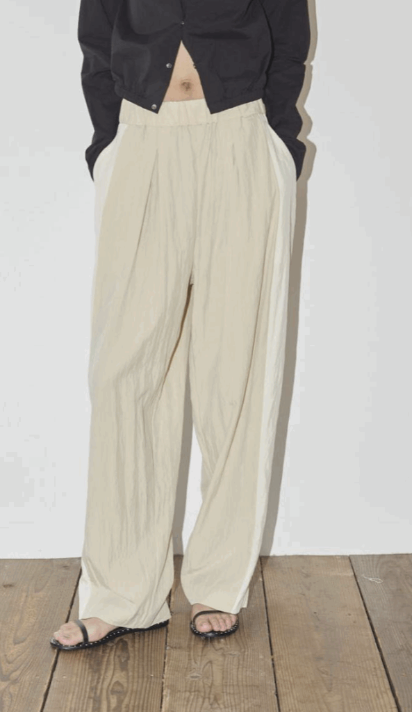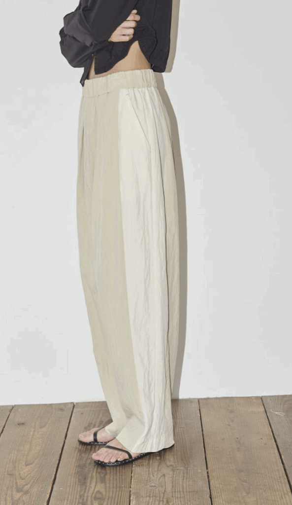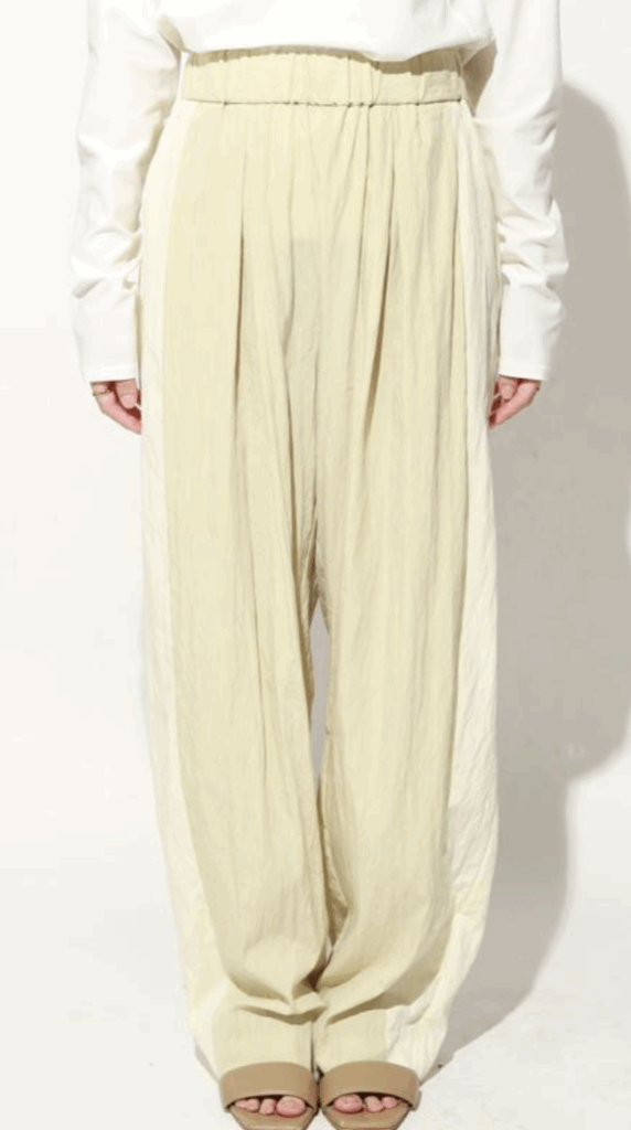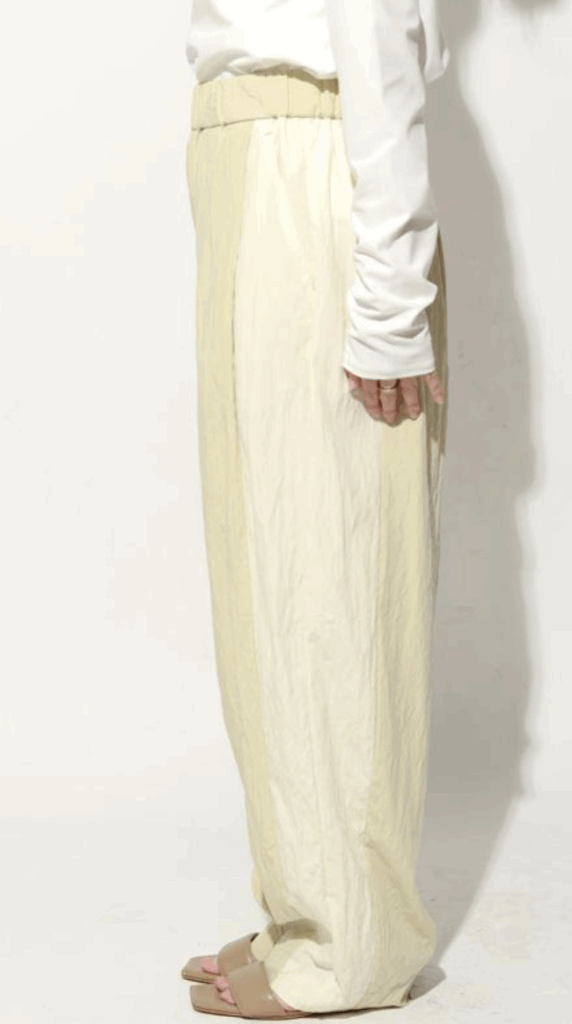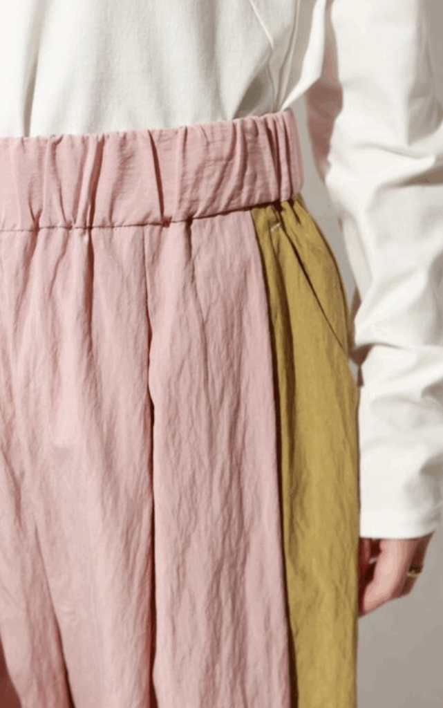 ウエストは総ゴム仕様ながら、リラクシーな着心地とすっきりとしたシルエットを両立しました。