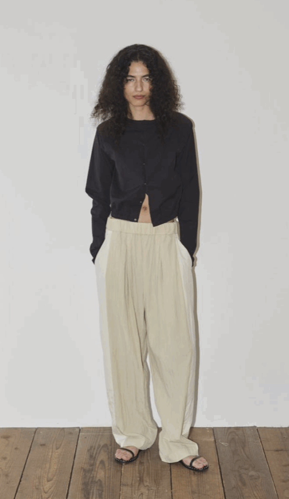 シアー素材のシャツやミニマルなタンクトップを合わせれば、涼感のある都会的スタイルが完成します。