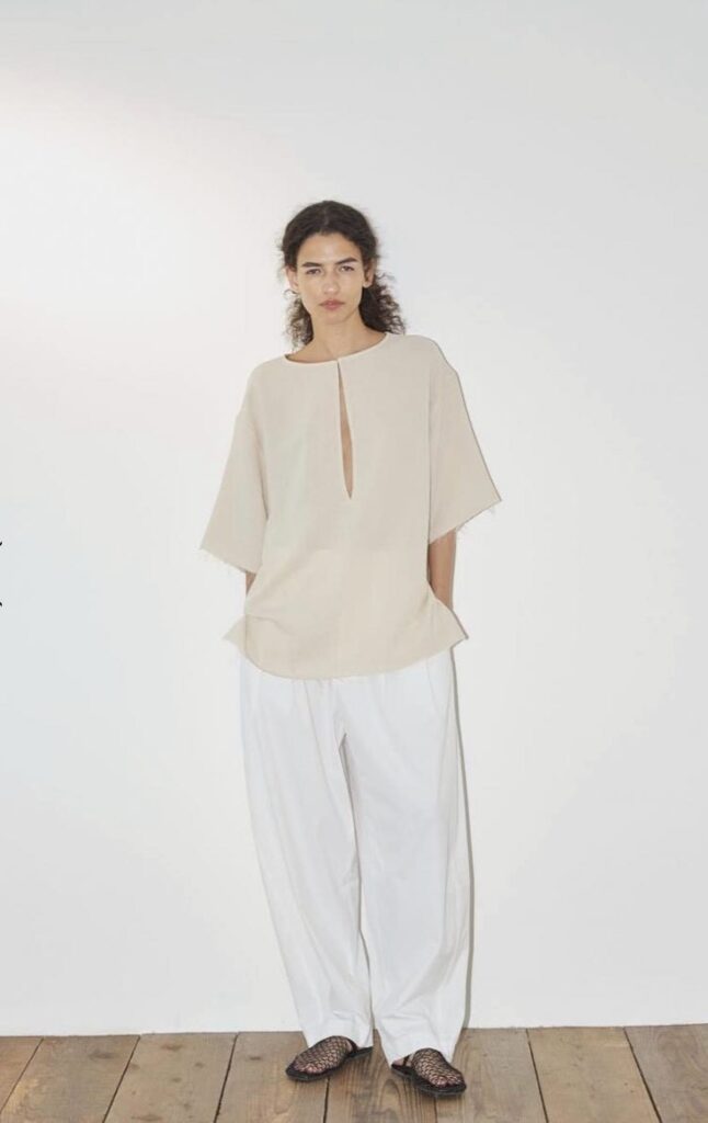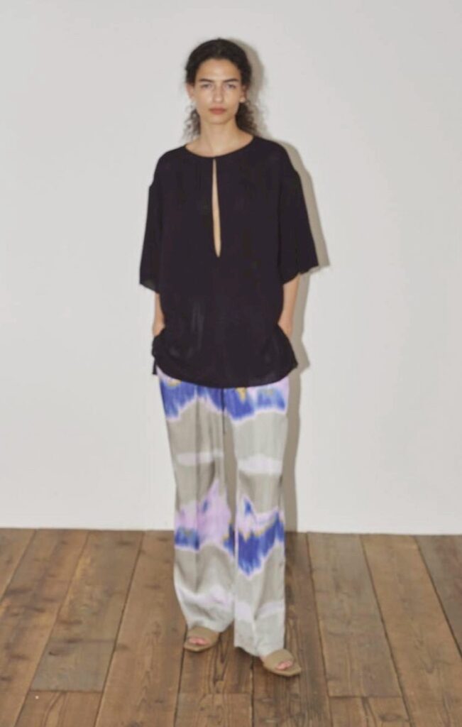 肌離れの良い軽やかな質感と程よいゆとりが、リラクシーでありながらも上品な印象を演出。