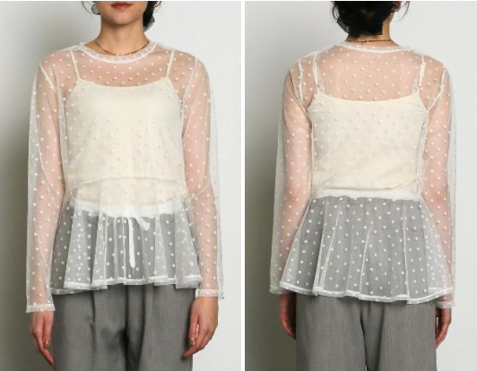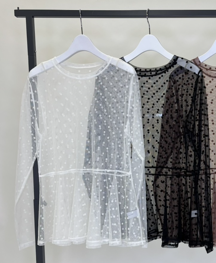ドットチュールチュニック ¥9,800 ドットチュールチュニック ¥9,800 【品番】259050 【納期】12月下旬 【サイズ】着丈 68.5cm 【素材】 ポリエステル 100% 【カラー】 オフホワイト、ブラック、ブラウン、ネイビー 【ブランド】SUGAR ROSE 2025年11月26日 投稿先 SUGARROSE 2026 SPRING お問い合わせは下記LINEまで ← 前ページ 次ページ →