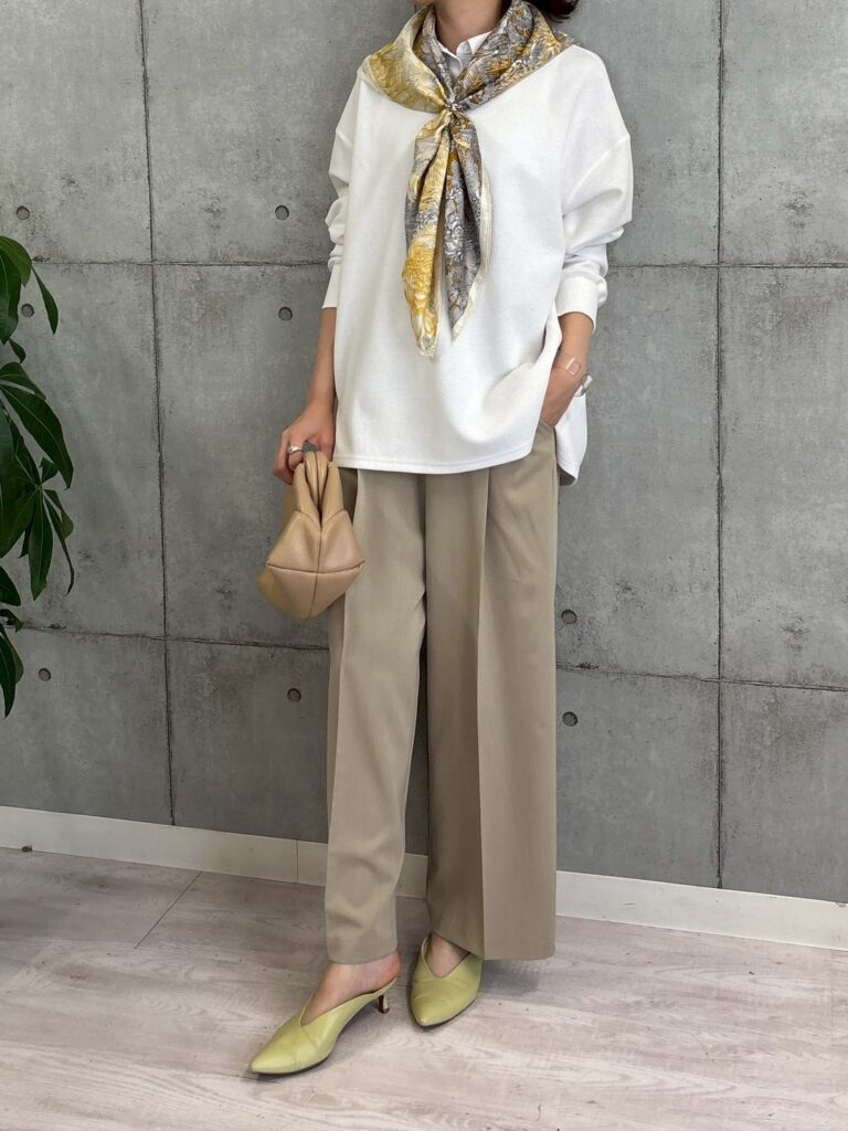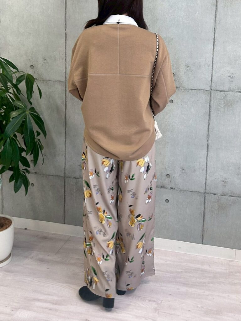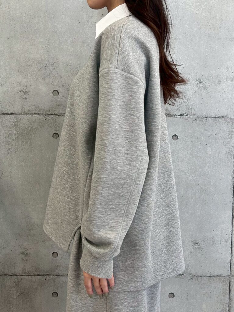 スウェット素材ながらも上品な表面感で、カジュアルすぎず大人っぽく着こなせるのも魅力。