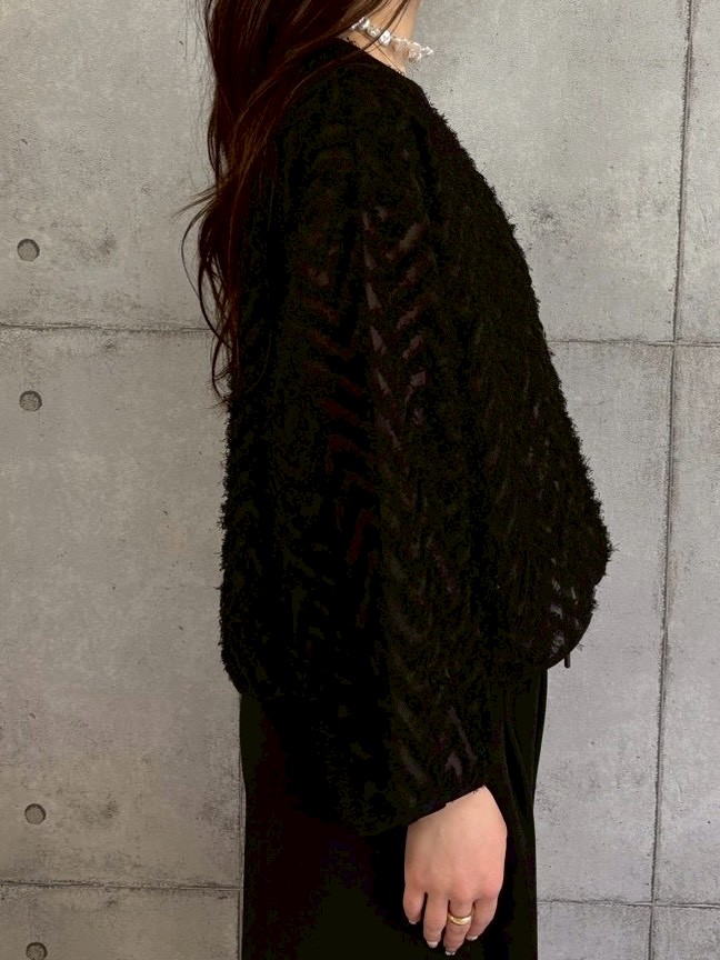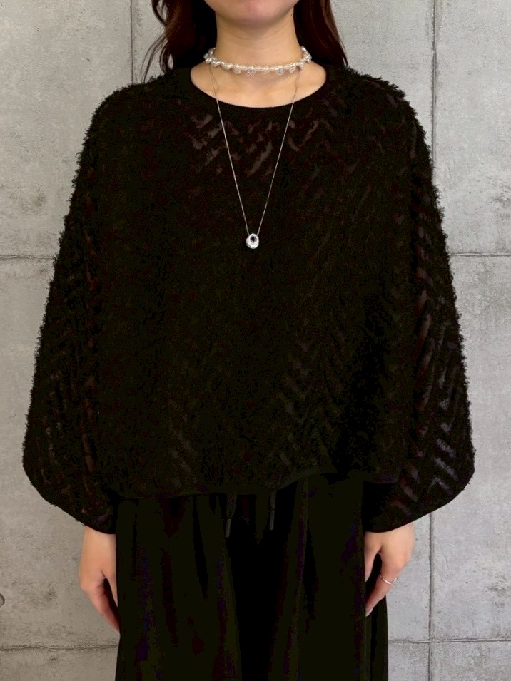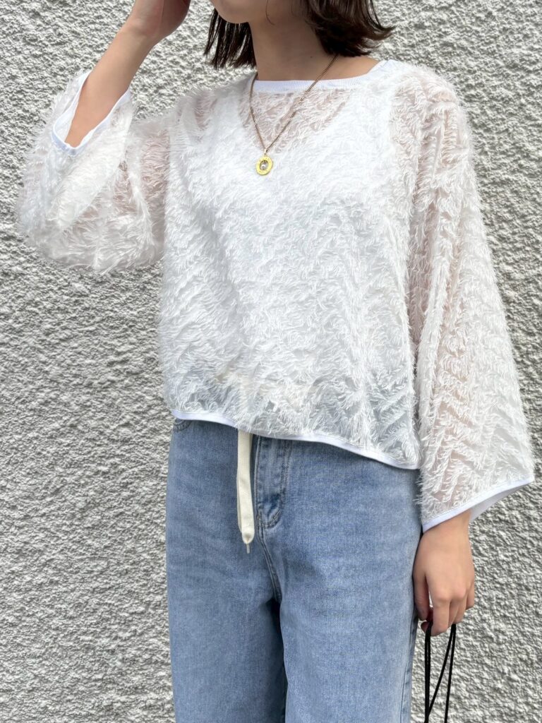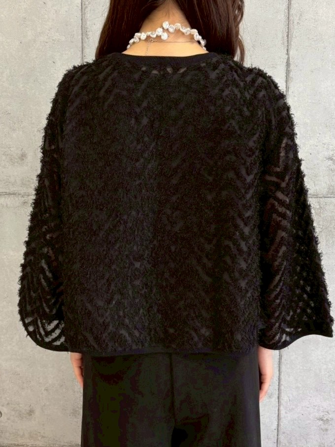 トレンド感のあるフリンジジャガード素材を使用したトップス。