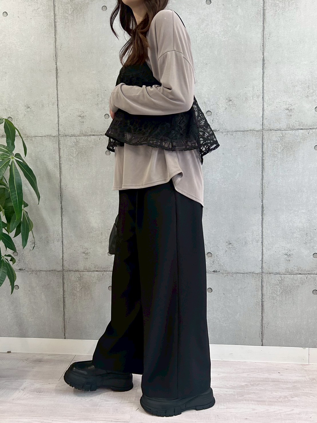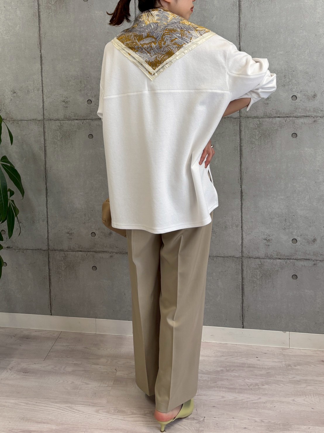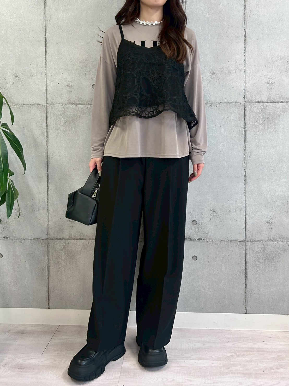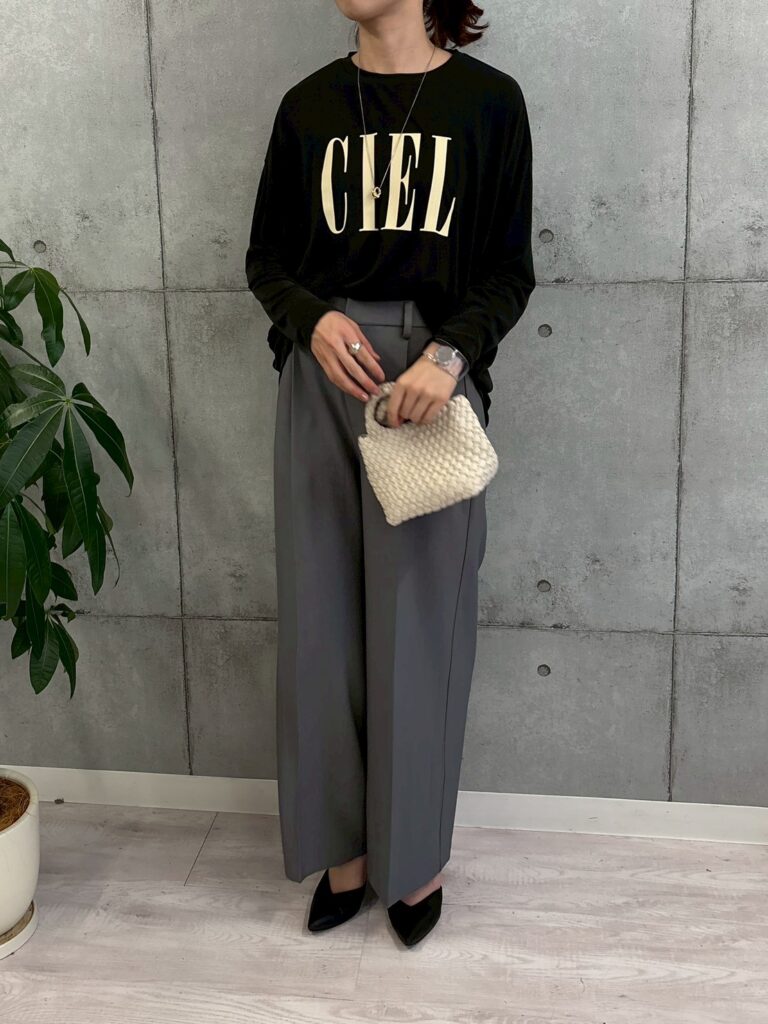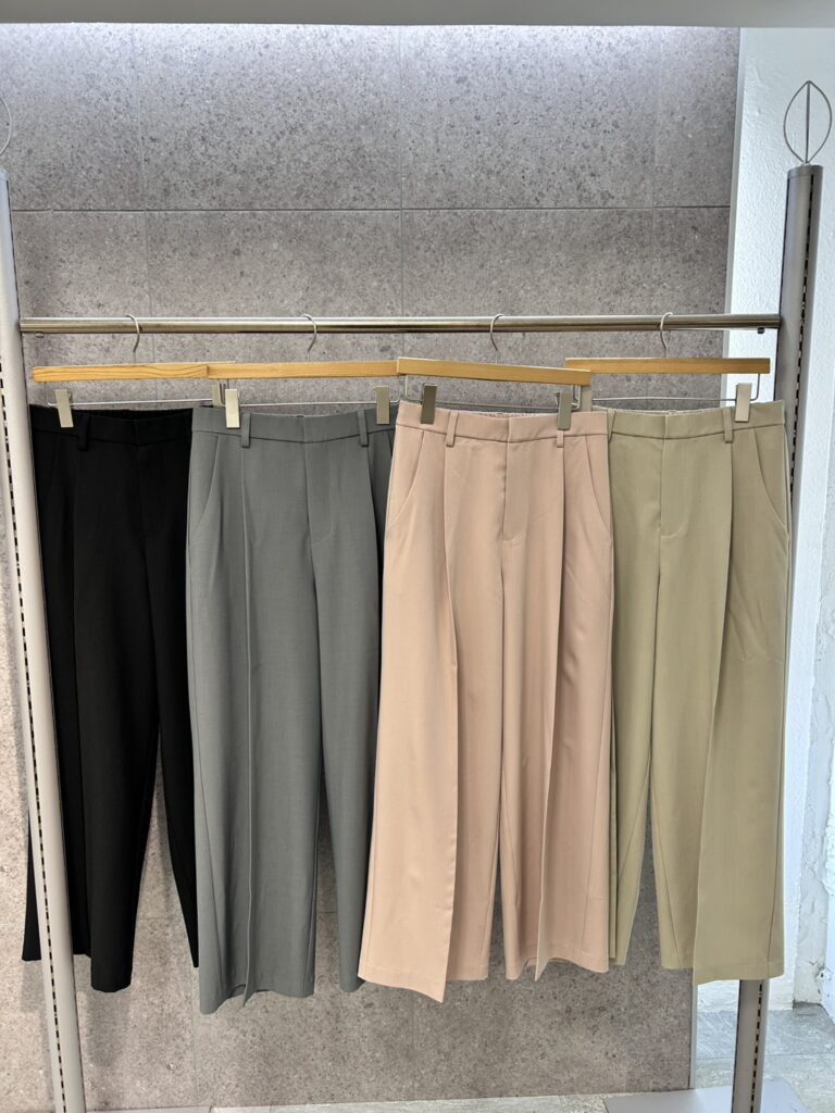 センタープレス入りできちんと感はキープしつつ、ゆったりとしたサイズ感でこなれた印象に。