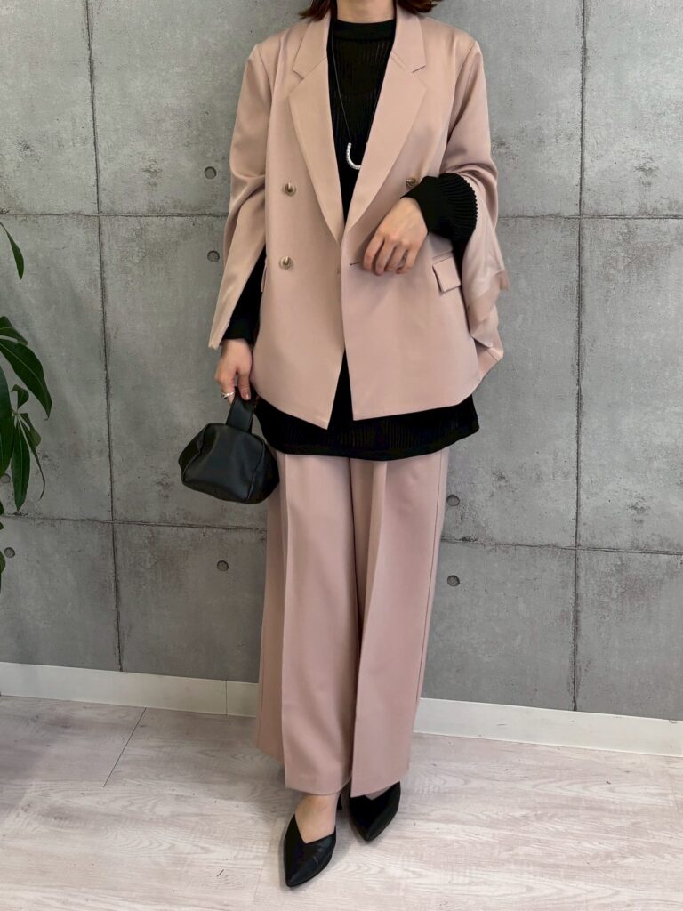 アウト、インどちらでもバランスよく着こなせるデザインで、オフィスからカジュアオフィスからカジュアルまで幅広いスタイリングに対応できる万能アイテムです。