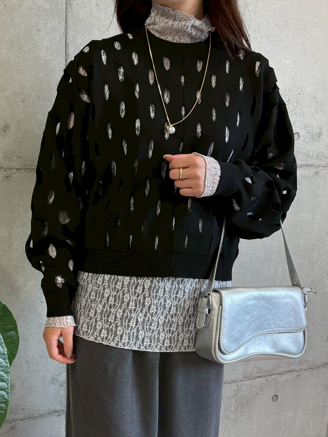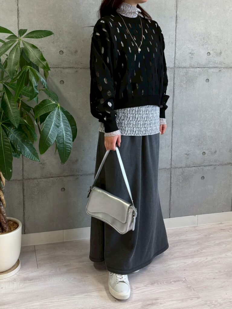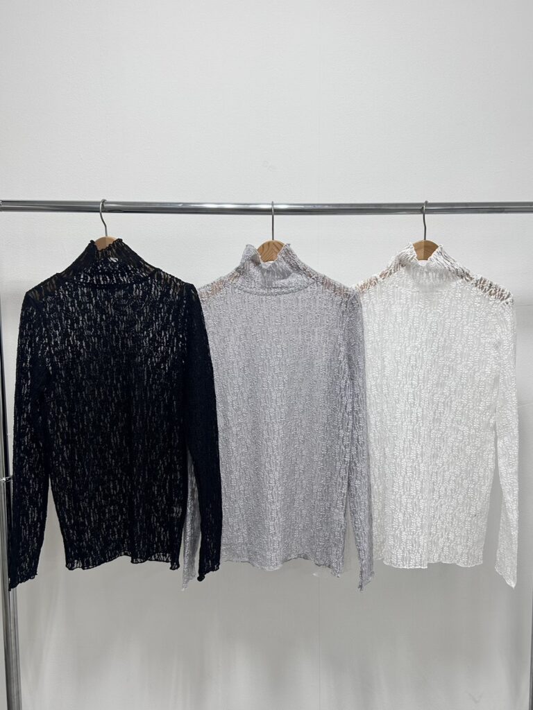 程よい透け感と凹凸のある生地が、コーディネートに抜け感を出してくれます。