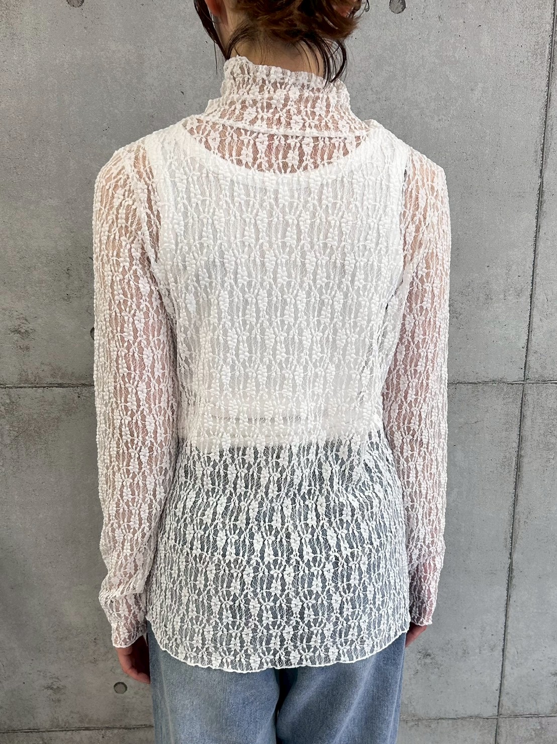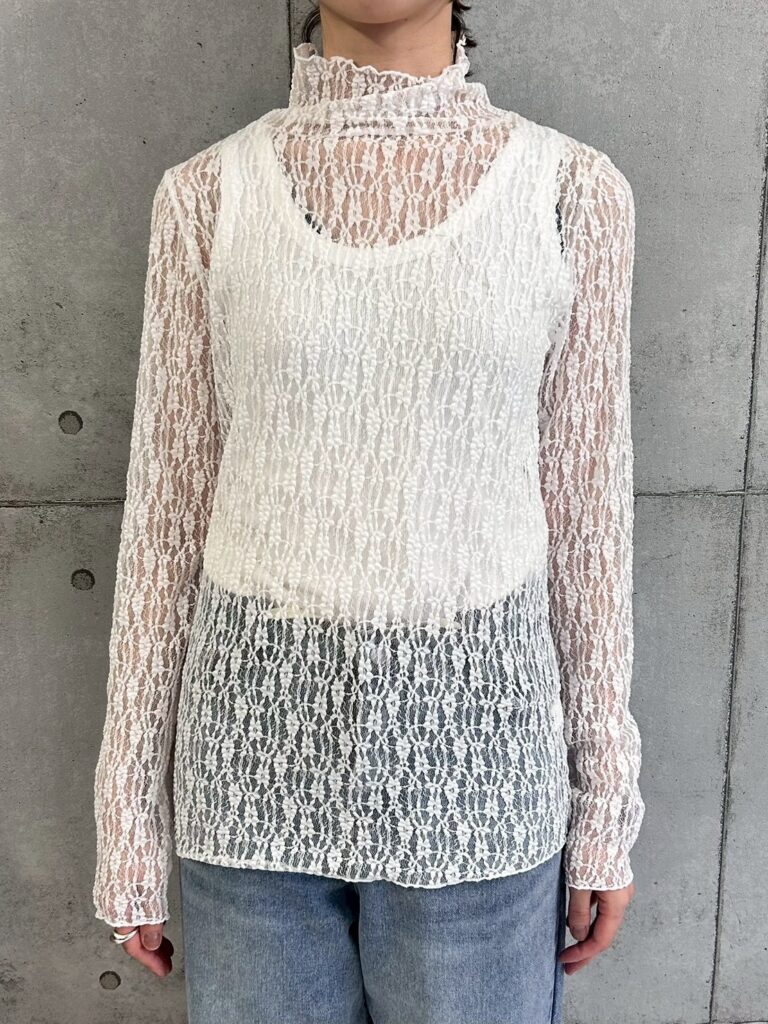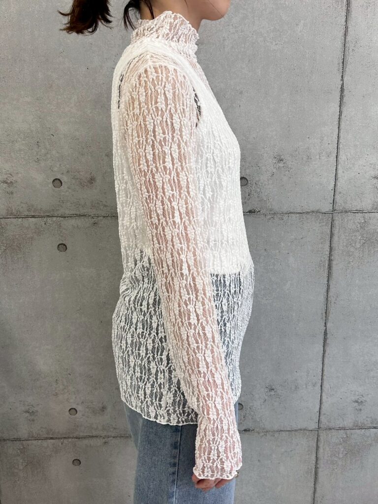 繊細で立体感のあるレース素材が魅力のシアートップス。