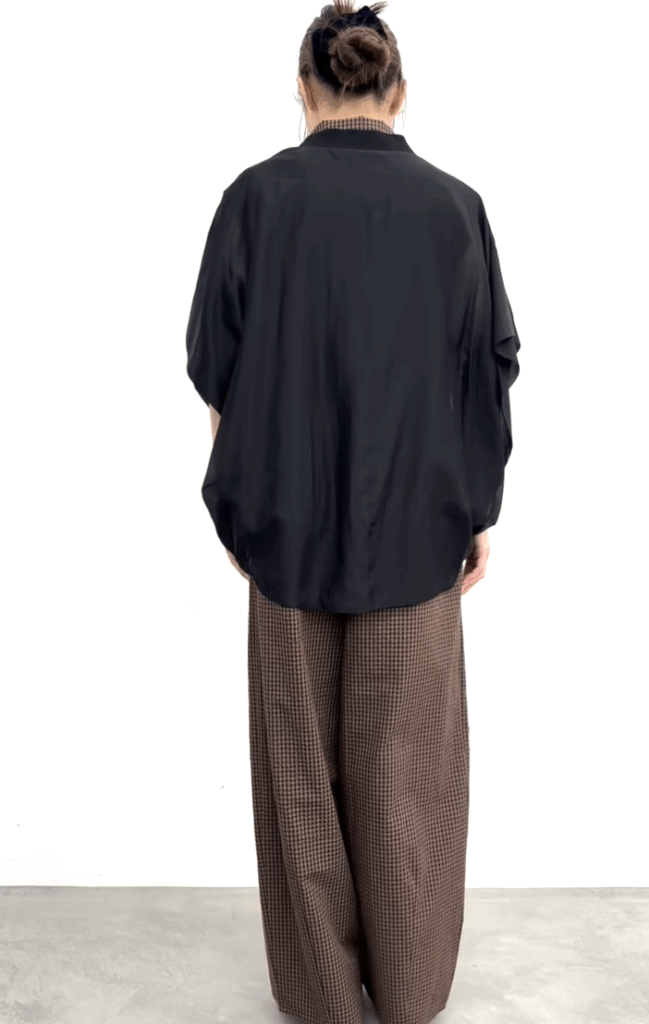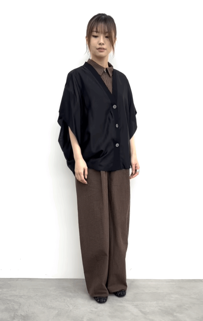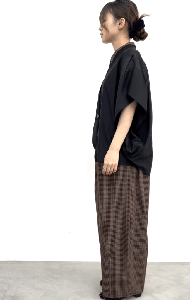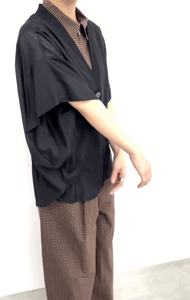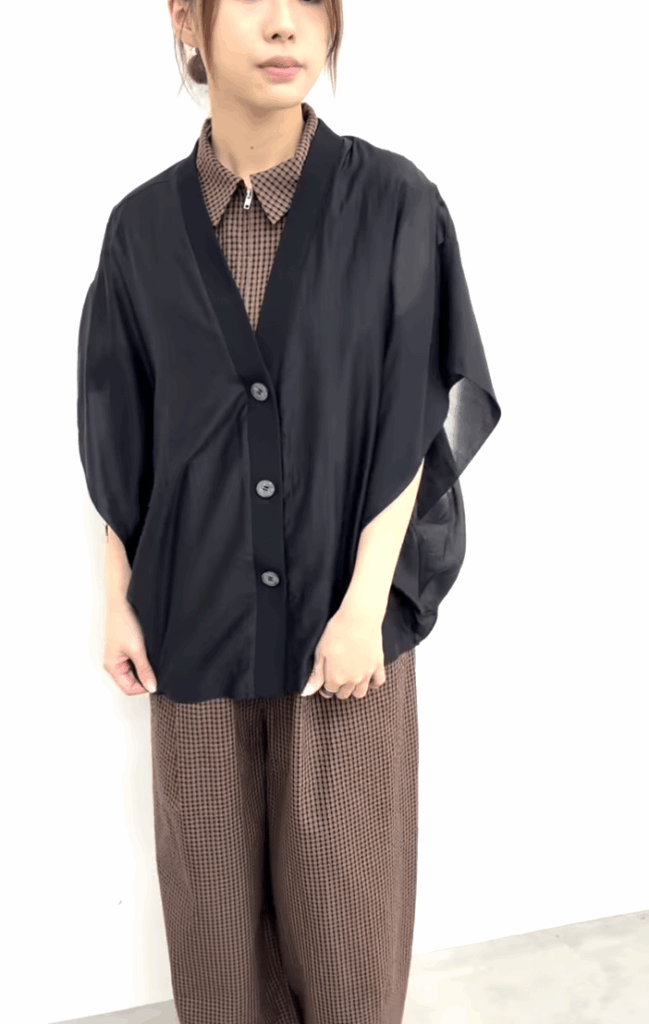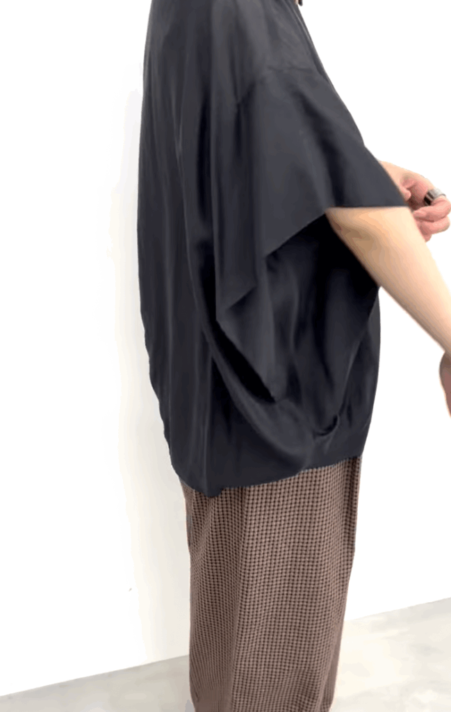 ノースリーブですが、広い身幅に、肩が落ちるシルエットなので二の腕もカバーできます。シアー素材でレイヤードも楽しめて冷房対策にもちょうど良いアイテムです。