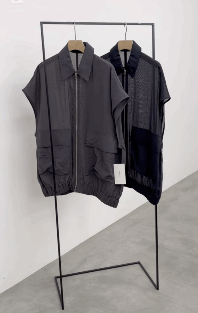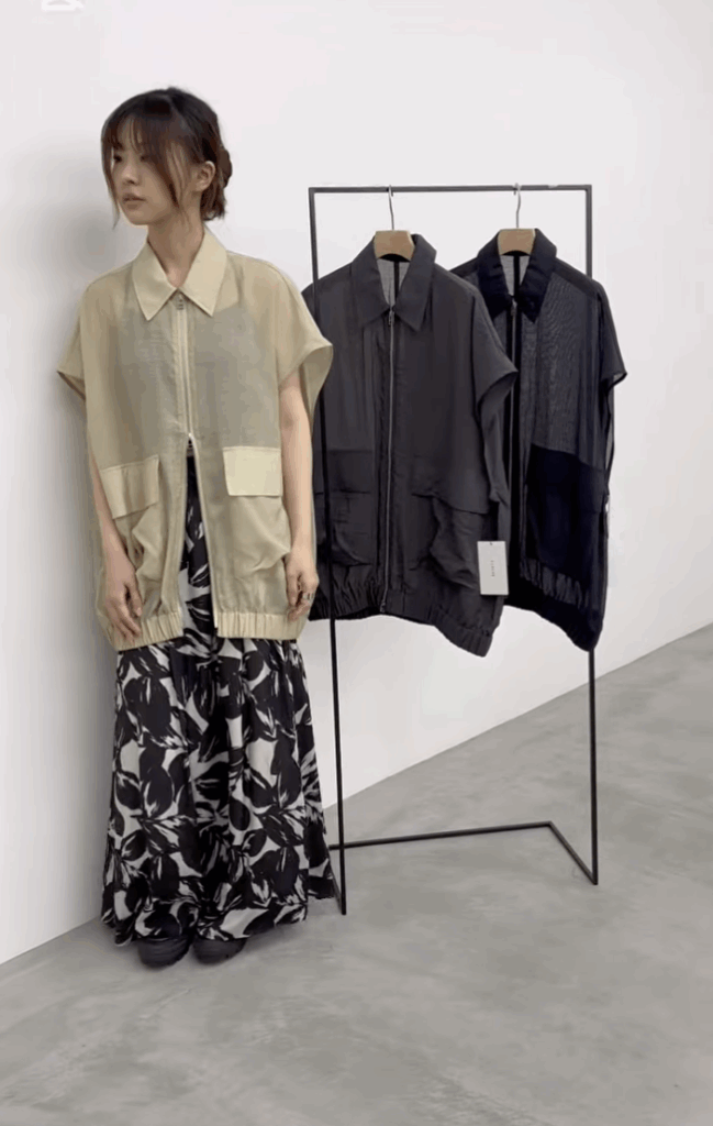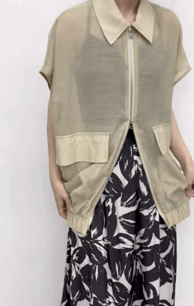 透け感により軽さや清涼感が出るので、春夏のレイヤードに最適なアイテムです。ダブルジップでインナーを見せたり、シルエットの調整ができます。