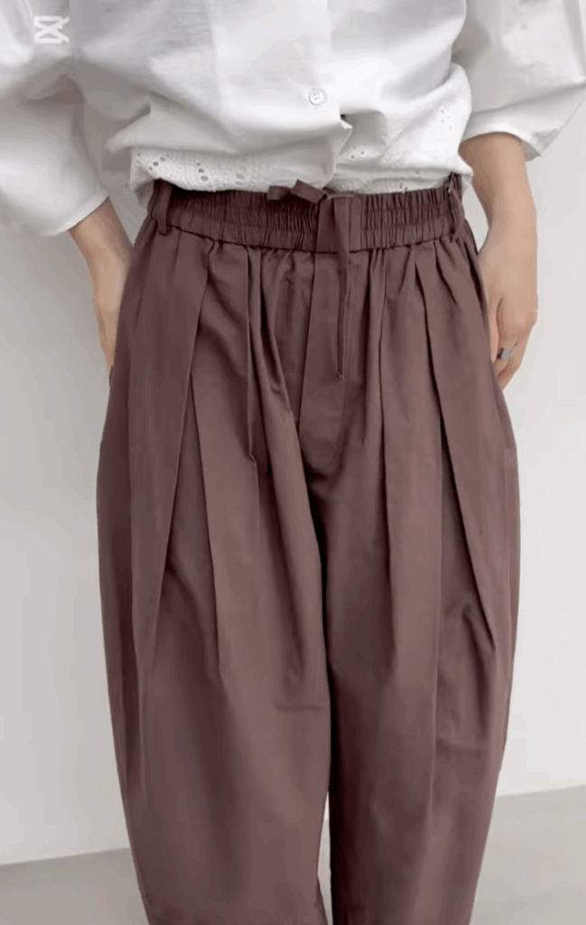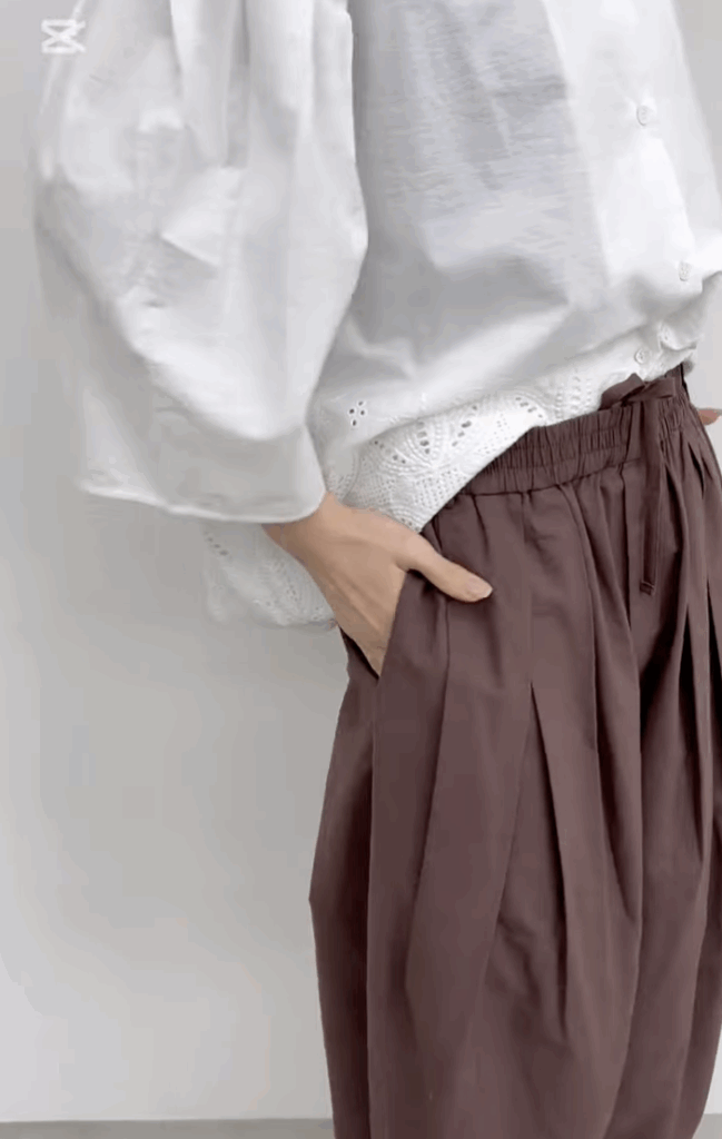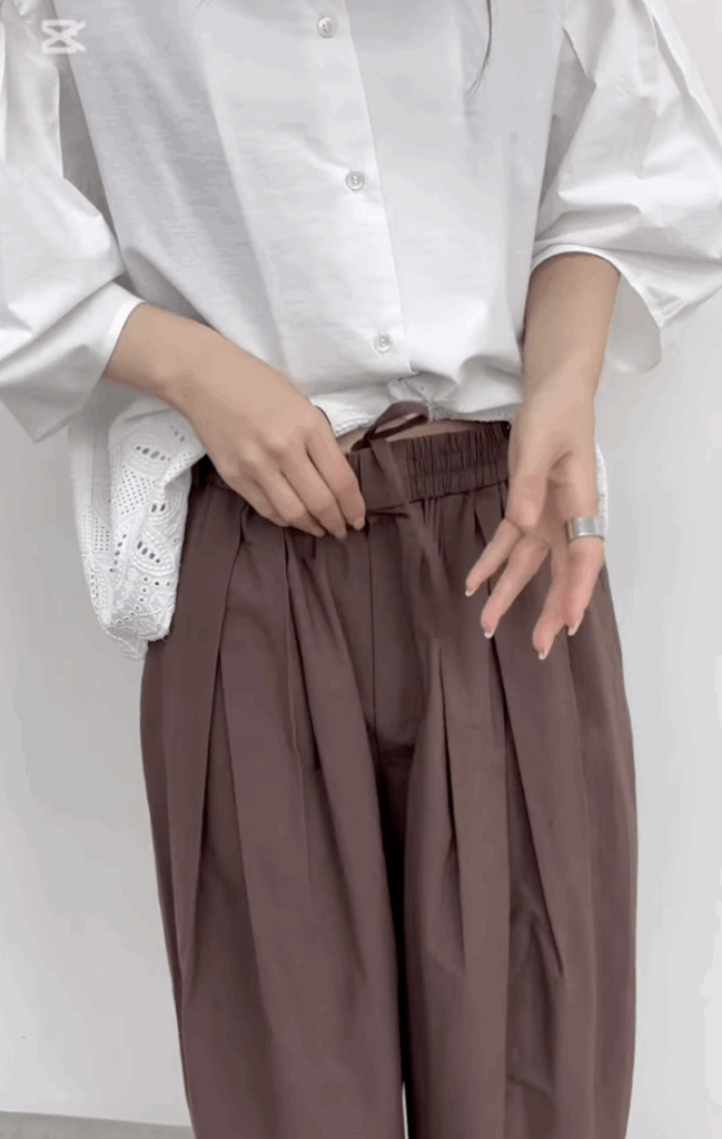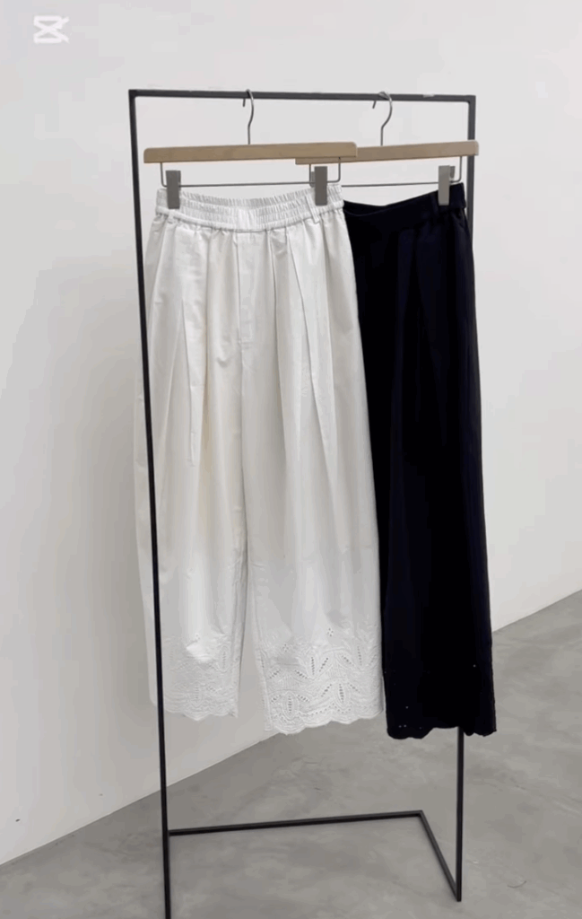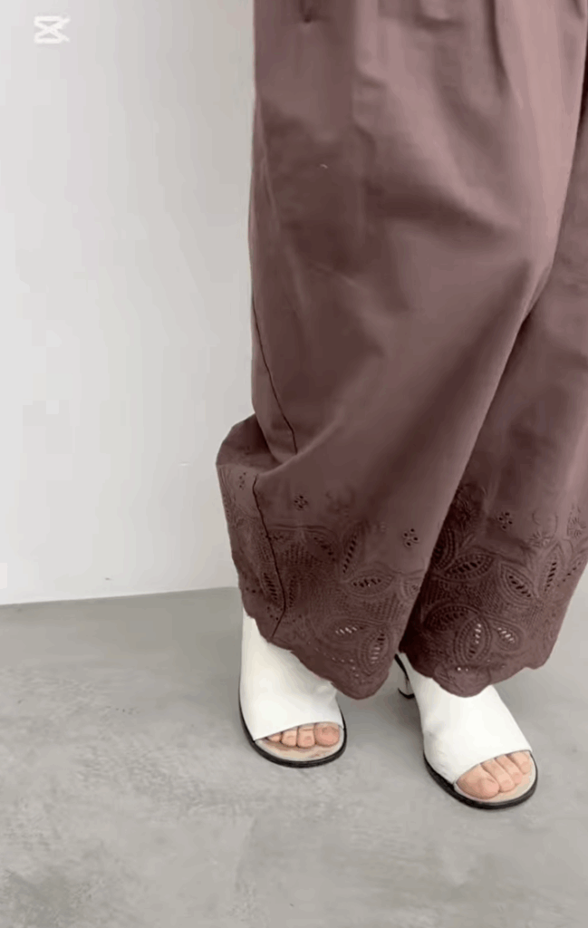 コットンレースを使用したタックパンツです。ウエストはゴムギャザー仕様ですが、タックとベルトループを付けてイージー過ぎない綺麗め要素もプラスしました。ウエスト内側には調節用の紐付きです。同素材のトップスとセットアップでの着用もおすすめです。01、02サイズの展開。オフホワイトのみ裏地つき。