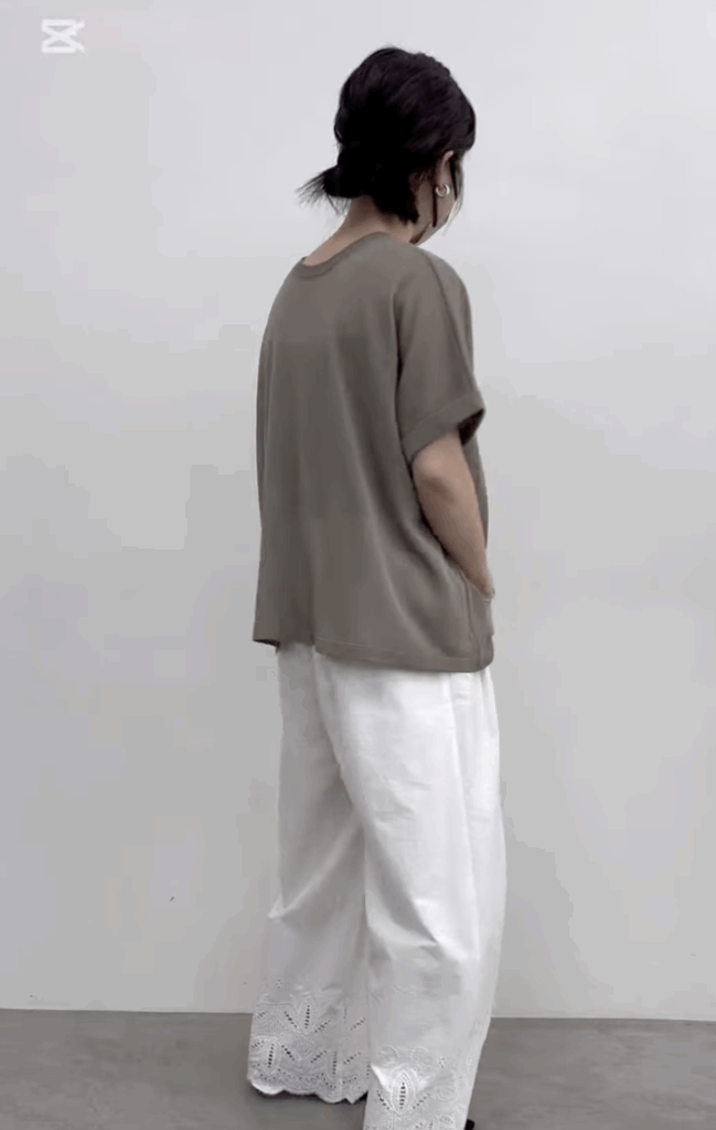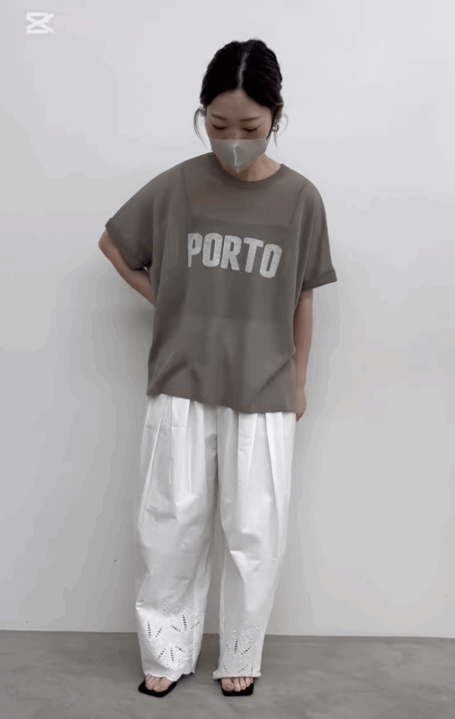 昨年人気の、麻混シアーロゴニットトップスのロゴ替え版。さらっと着やすいデザインで、ロールアップした袖口がポイントになります。ロゴの意味は、ポルトガルの地名です。