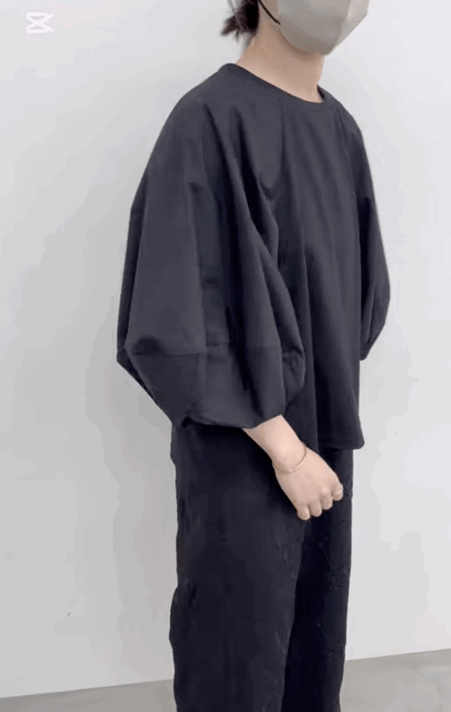 立体感のある七分袖に、身生地と袖の異素材のコントラストがポイントのトップス。一枚で着映えするアイテムなので、デイリーからお出かけシーンまで幅広く活躍できます。軽い着心地で季節の変わり目にも使いやすい万能アイテムです。