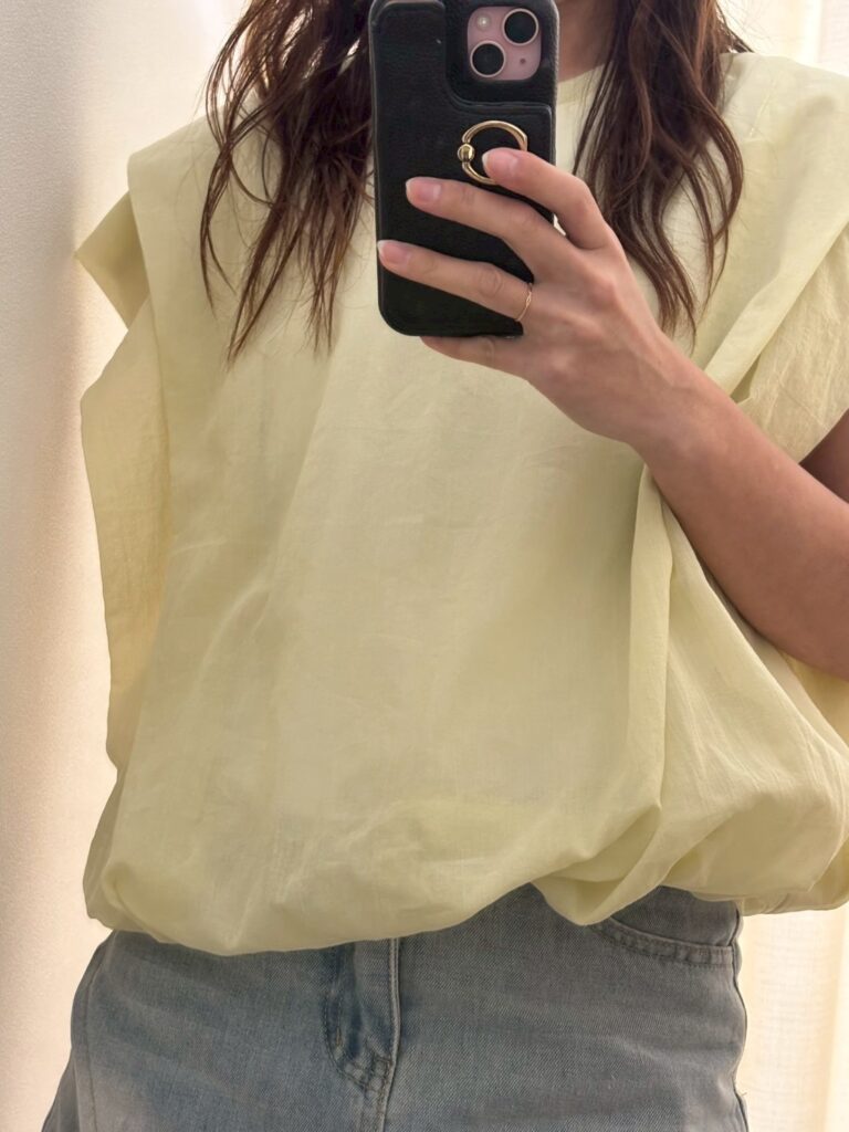 綿100の清涼感ある素材のバルーンブラウスは、インナーがセットになったデイリーに活躍するアイテムです。襟元、裾でインナーと繋ぎ合わせているので一枚着用するだけでセットのコーディネートが決まるブラウスになります。襟元の編み立てリブで程よいカジュアル感をプラスしました。