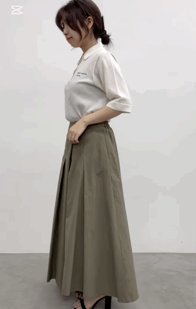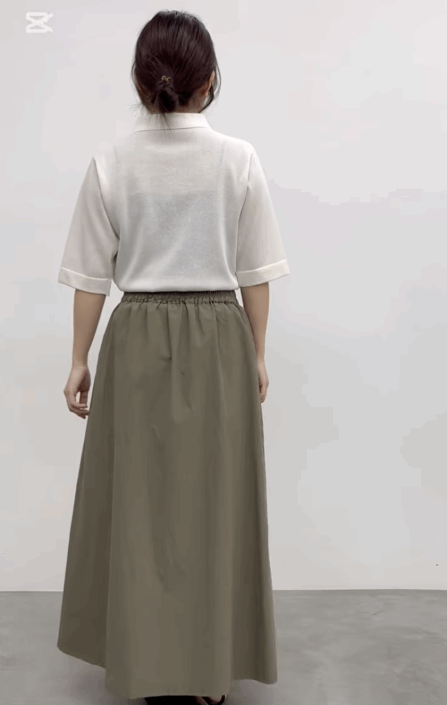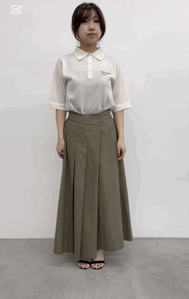 綿100%のスカート。アシンメトリーのデザインを楽しんでいただきたいアイテム。ラップスタイルにトレンド感を活かし、スニーカーやメンズライクな合わせで着こなしてみるのが今年っぽい一着です。もちろん、分量たっぷりなシルエットでフェミニンにも落とし込んでいただけます。