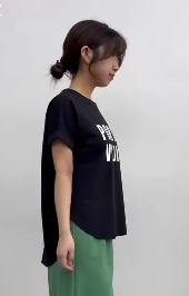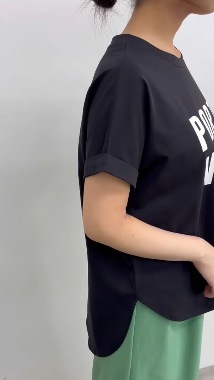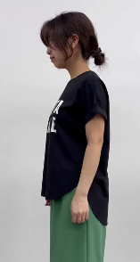 前後差のある裾とロールアップした袖口がポイントになる、定番人気シルエットです。