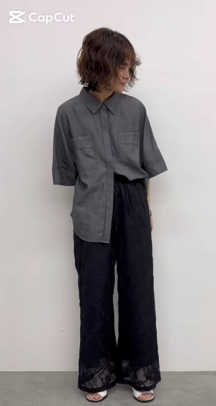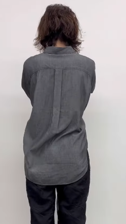 デニムの重い印象を塗り替える柔らかいシアーデニムのトップスで、夏にぴったりな軽さも兼ね備えています、