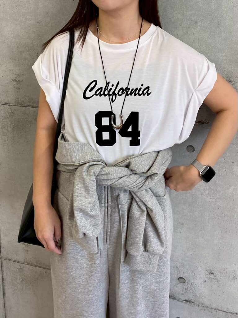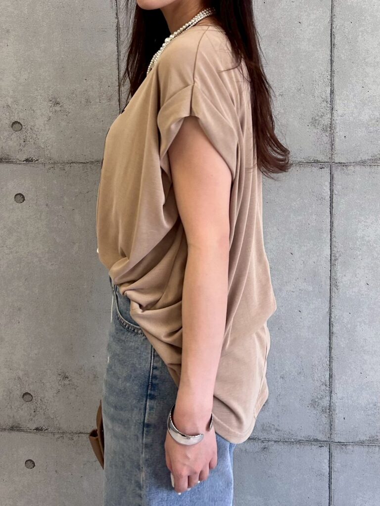 ソフト風合いフロッキー肩タックプリントTシャツ
