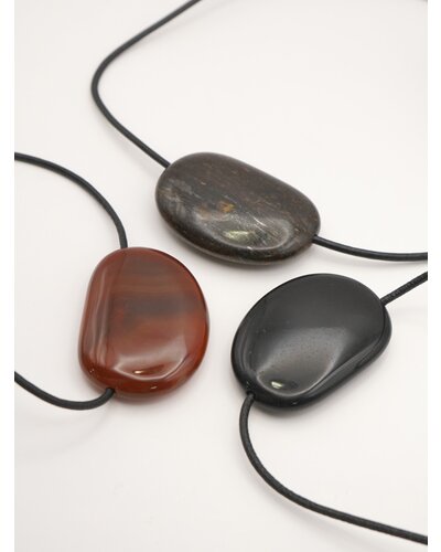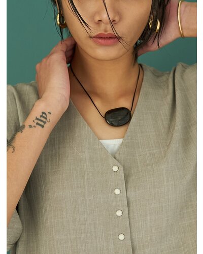 ★ 平たいお豆を彷彿させる天然石と本革紐の組み合わせはシンプルながらも一際目を引くミニマルなネックレスとなっております。天然石は職人さんがひとつひとつカットして形を作り、艶が出るよう長時間磨いて仕上げております。スライドビーズ付で簡単に長さ調節が可能なので、ロングにして大人っぽくつけたり、短くチョーカーの様にしてよりミニマルな雰囲気にしても◎先端のチャームはYENNオリジナルパーツとなっており、金具は全てSV925素材を使っているので全体的に上質な印象に。※天然石は天然素材の為、一つ一つ色味やサイズに若干の個体差が生じますので予めご了承下さい。