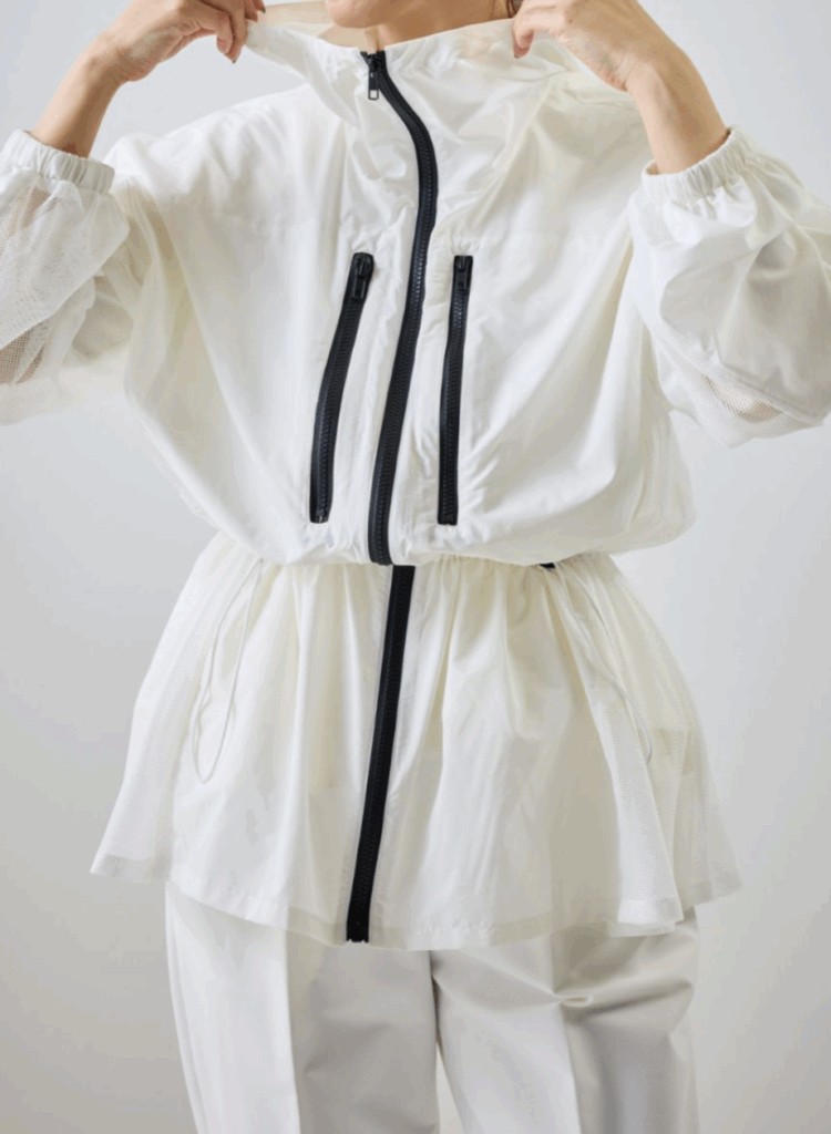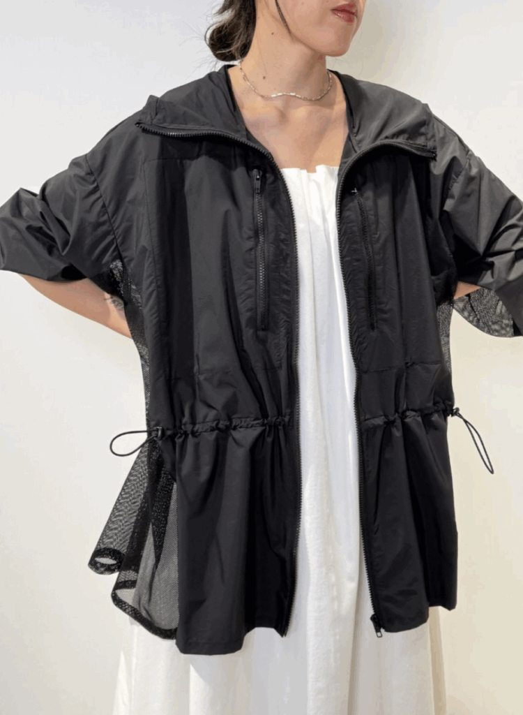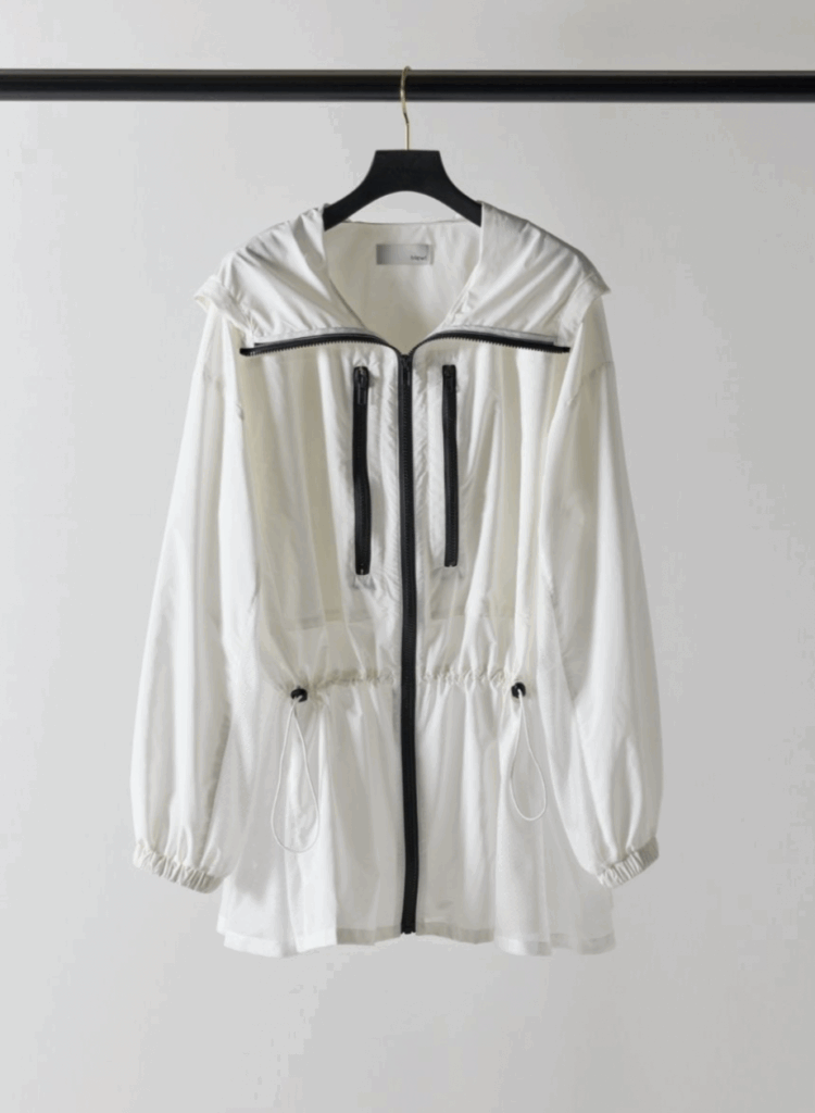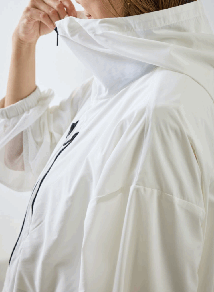 UV機能付きの薄手シアー素材を使用した、軽やかなパーカー。