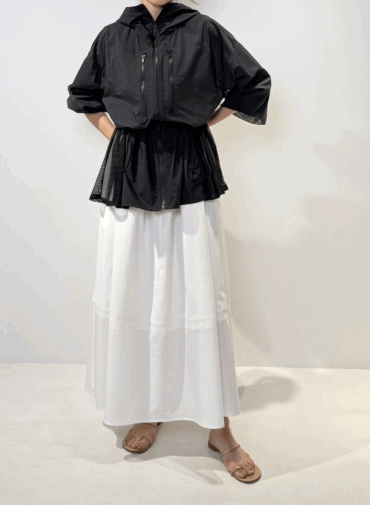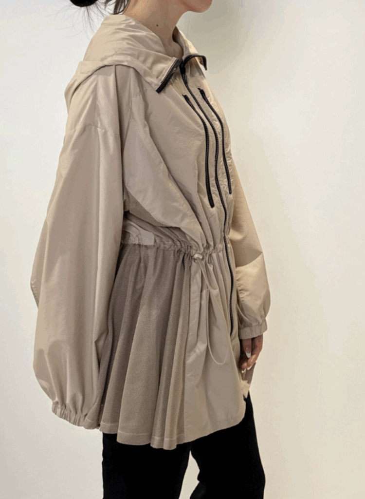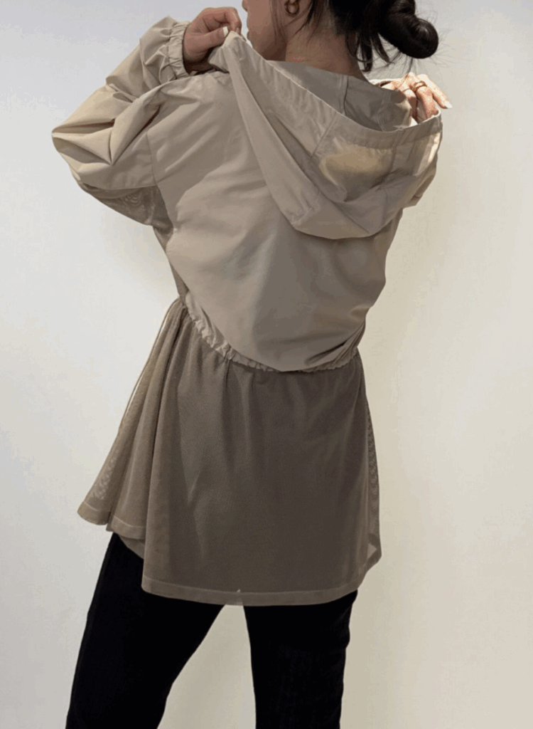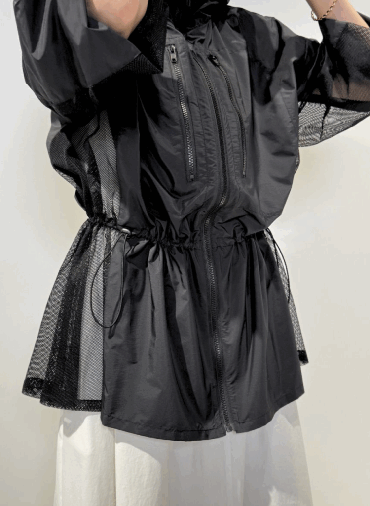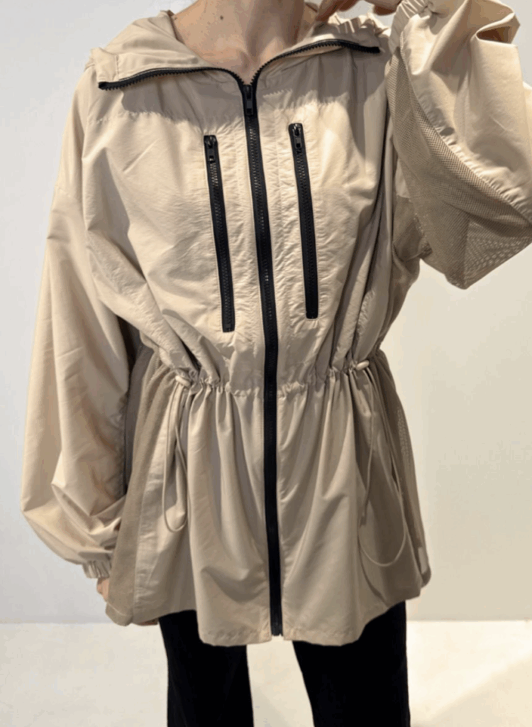 UV機能付きの薄手シアー素材を使用した、軽やかなパーカー。