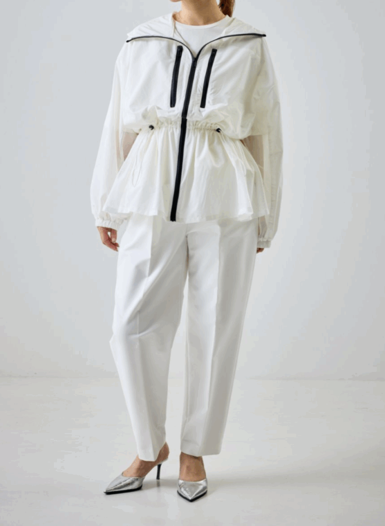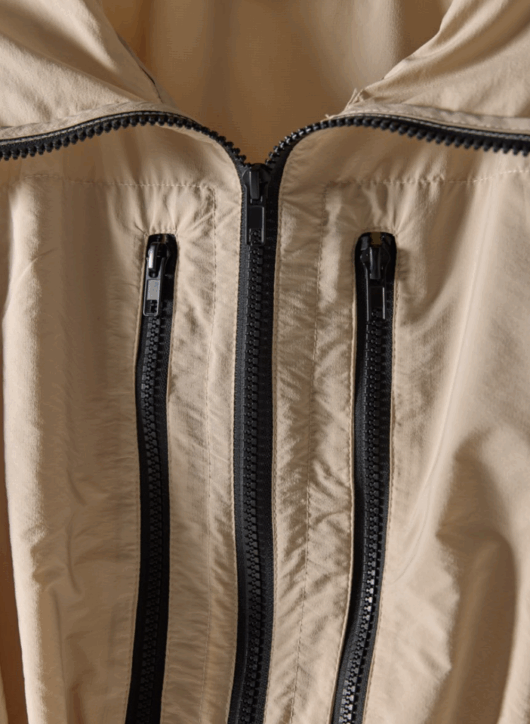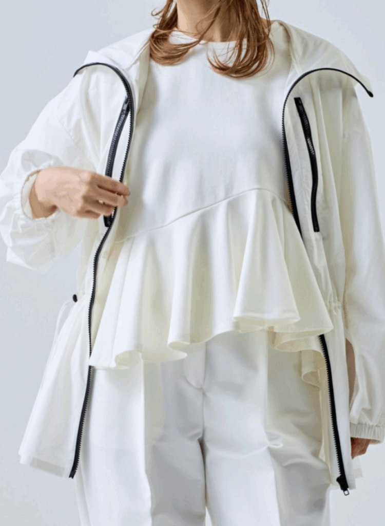 配色ファスナーがほどよくスポーティなアクセントになり、レジャーシーンにも映える一枚。