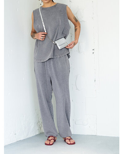 ★ 綿100%のミニ裏毛にケミカル+オーバーダイ加工を施したスウェットパンツです。