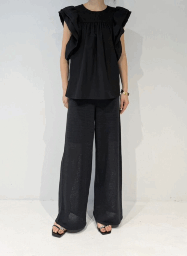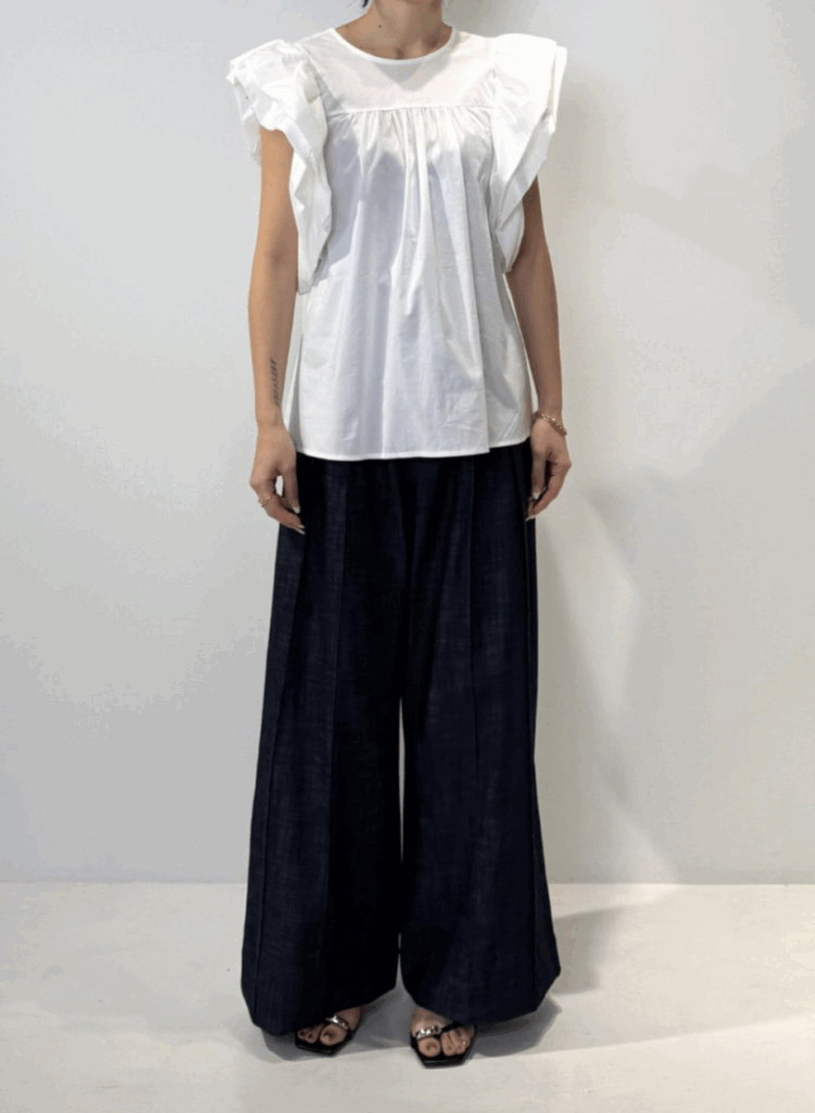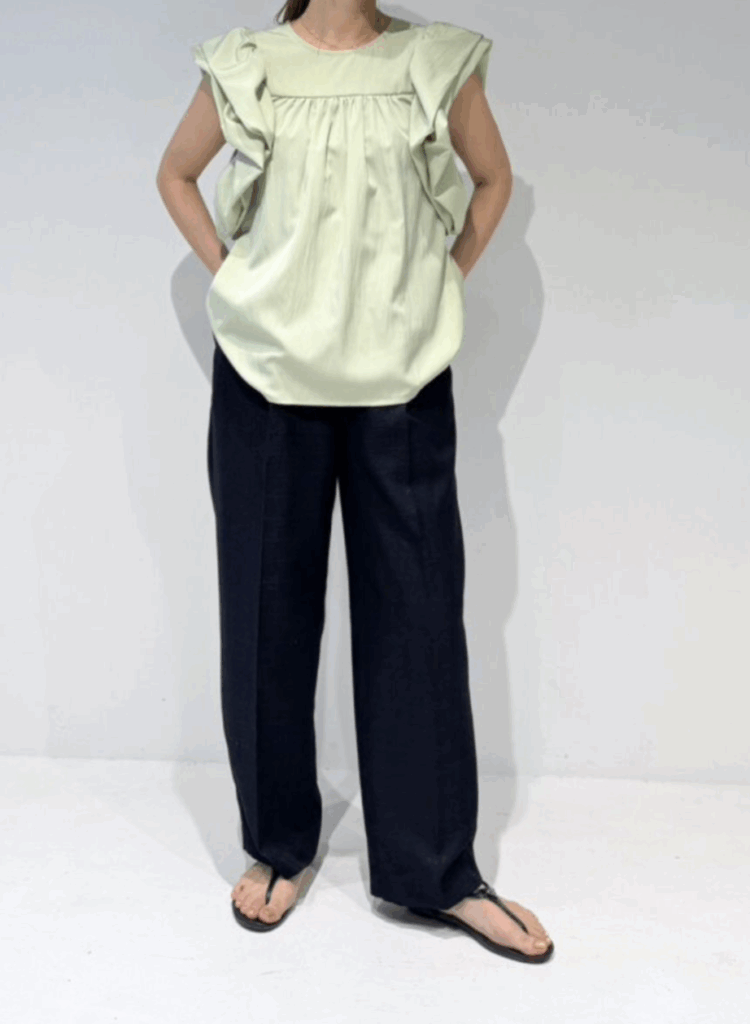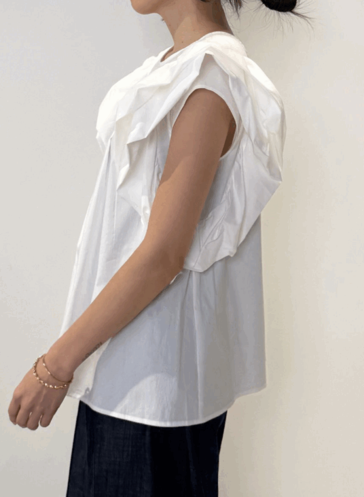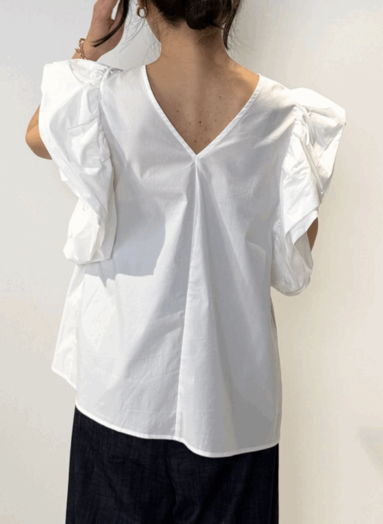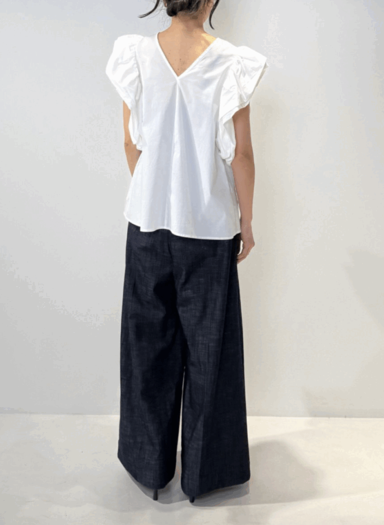 ローズの花びらが重なるような華やかな袖デザインが目を引くブラウス。コンパクトな肩幅にボリューム袖を組み合わせることで、小顔効果と華奢見えを同時に叶えます。胸元にはギャザーを施し、自然にボディラインをカバー。ローズ袖の内側にキャップスリーブを忍ばせることで、気になる二の腕もさりげなくフォローします。バックスタイルはVネックで抜け感をプラスし、後ろ姿まで印象的に。ワッシャー加工を施した生地はシワが目立ちにくく、忙しい毎日にも嬉しい一枚。きちんと感と華やかさを兼ね備えた、大人のためのフェミニンブラウスです。