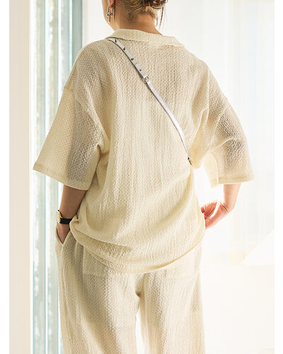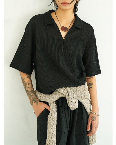 ★ 凹凸感のあるカットレース素材を使用した、表情豊かなキーネックブラウス。フロントのキーネックが程よい抜け感を生み、軽やかで涼やかな印象を演出します。サイドに施したダブルタックディテールが裾周りに動きを与え、立体的なシルエットに。ストレッチ性のあるレース素材により、見た目の繊細さと快適な着心地を両立しました。シンプルながらもディテールにこだわり、大人の余裕を感じさせる一着です。