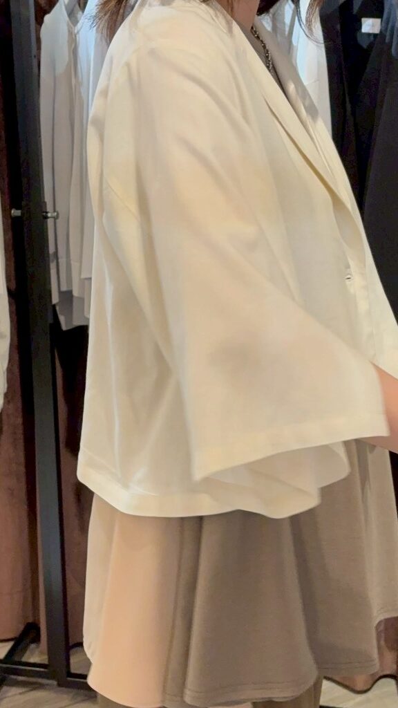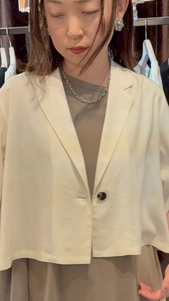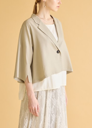 スリットスリーブジャケット【納期4月中旬頃】 ¥17,000 スリットスリーブジャケット 【品番】263153 【プライス】17,000円 【サイズ】着丈:52cm 【カラー】グレージュ 【素材】 レーヨン 70%綿 30% 【ブランド】SUGAR ROSE 2026年1月14日 投稿先 sugerrose 2026ss お問い合わせは下記LINEまで ← 前ページ