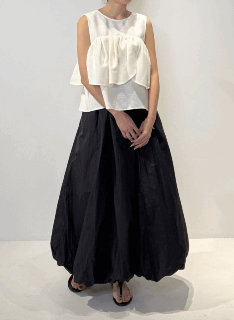 「軽やかに揺れる、立体バルーンシルエット。」