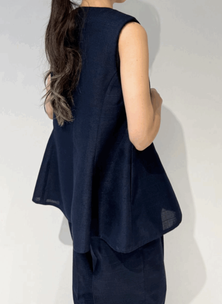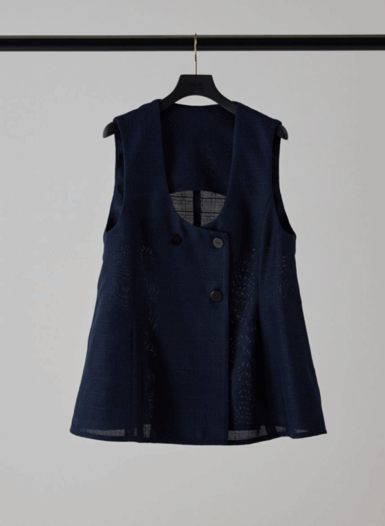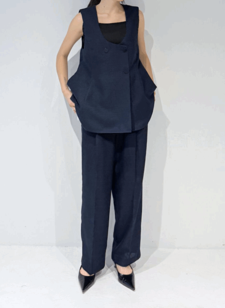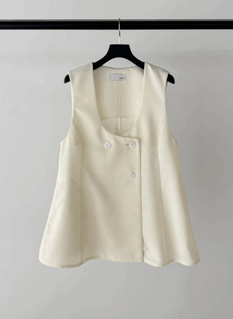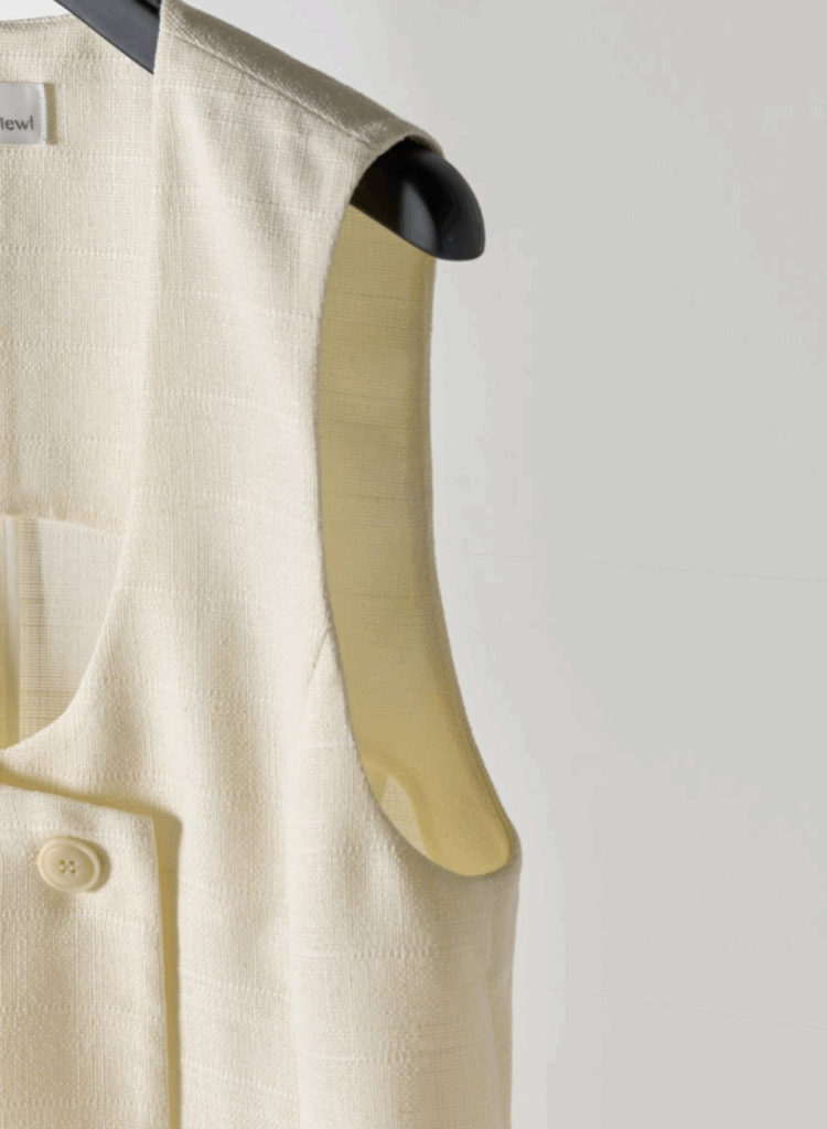 Uネックリネンツイードジレ