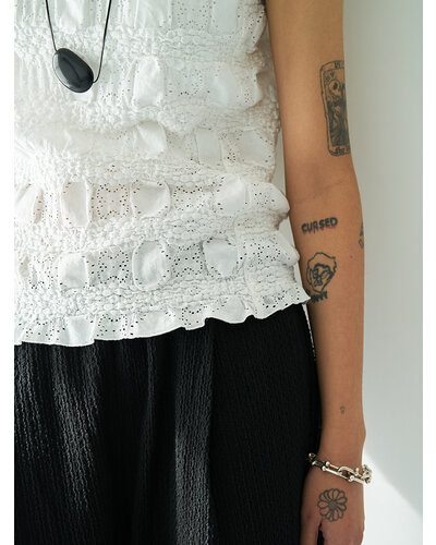 ★ 綿混のアイレットレース生地を使用したタンクトップです。