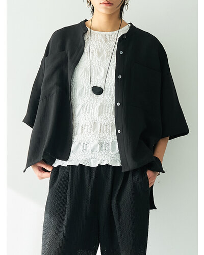 生地にシャーリング加工を施すことで生み出す特有の凹凸と伸縮性がプラスされた生地を使用。