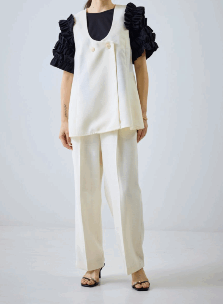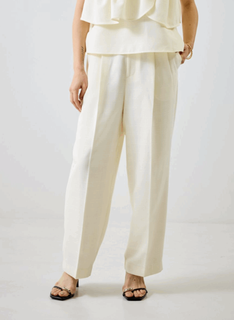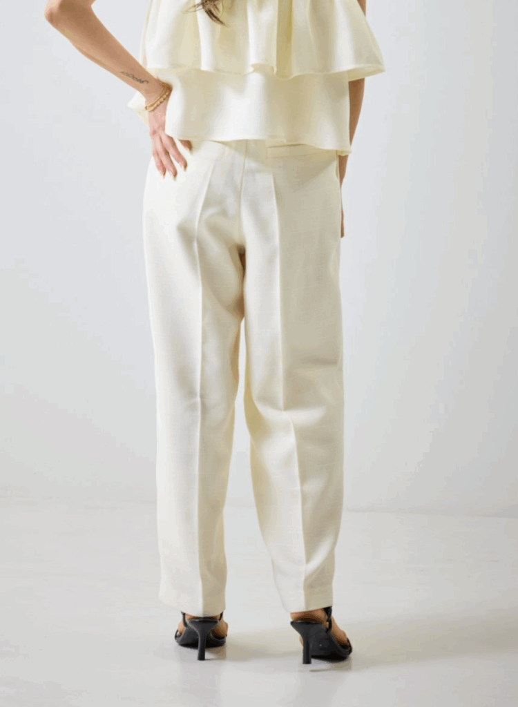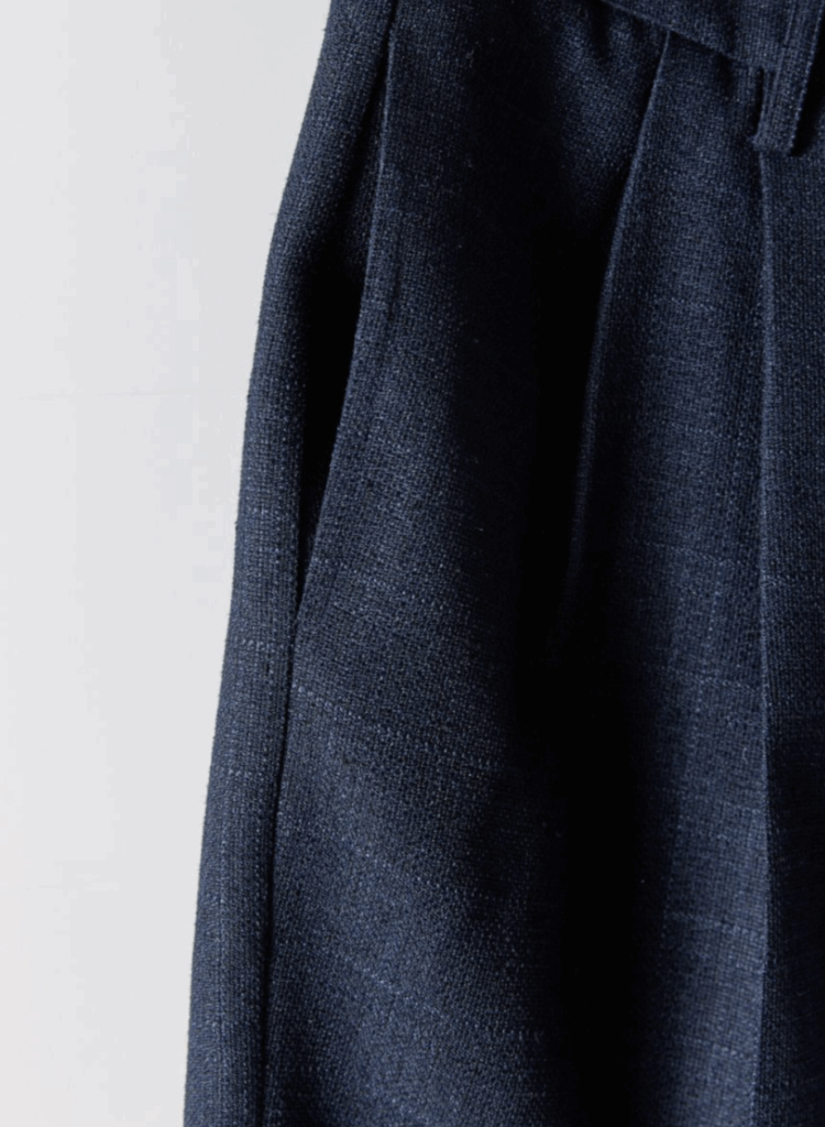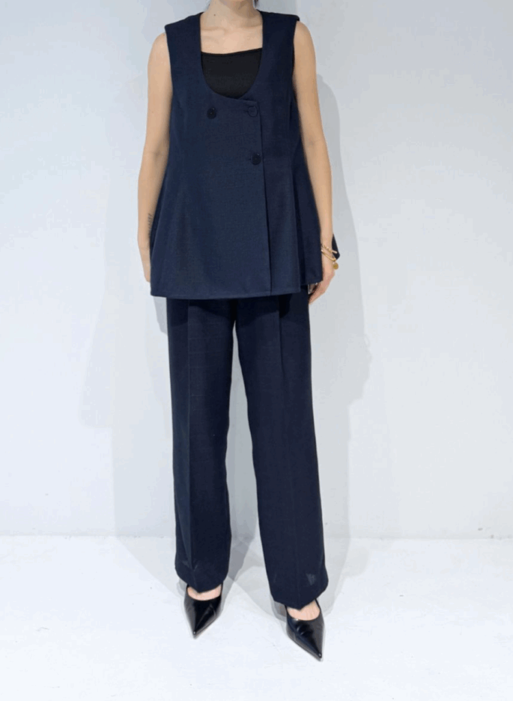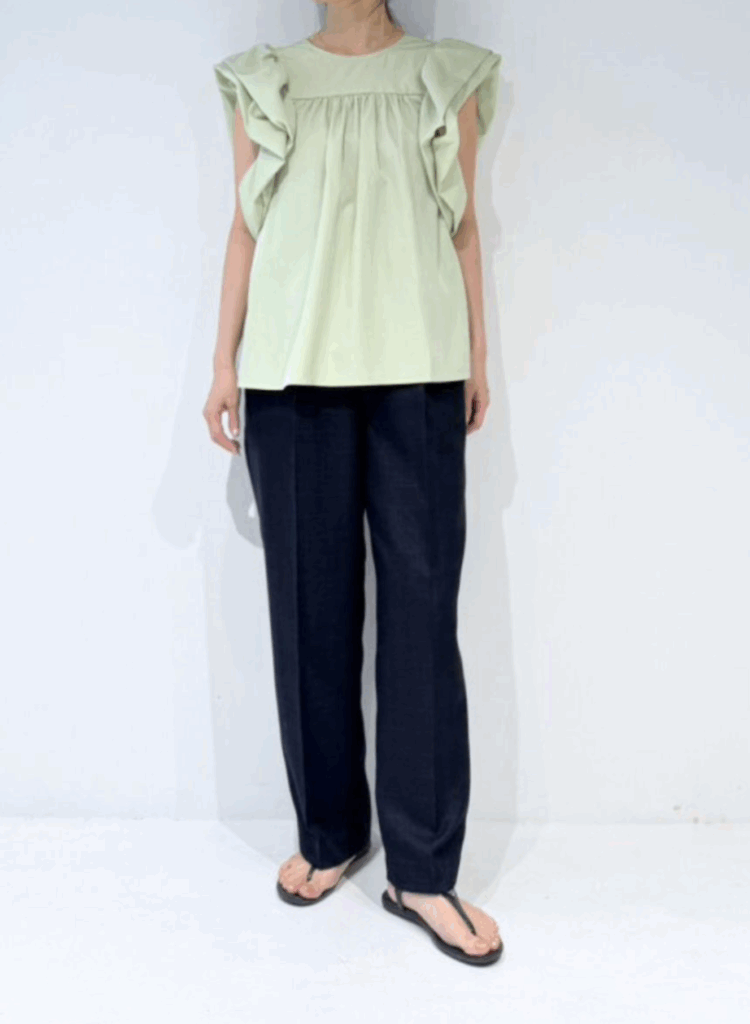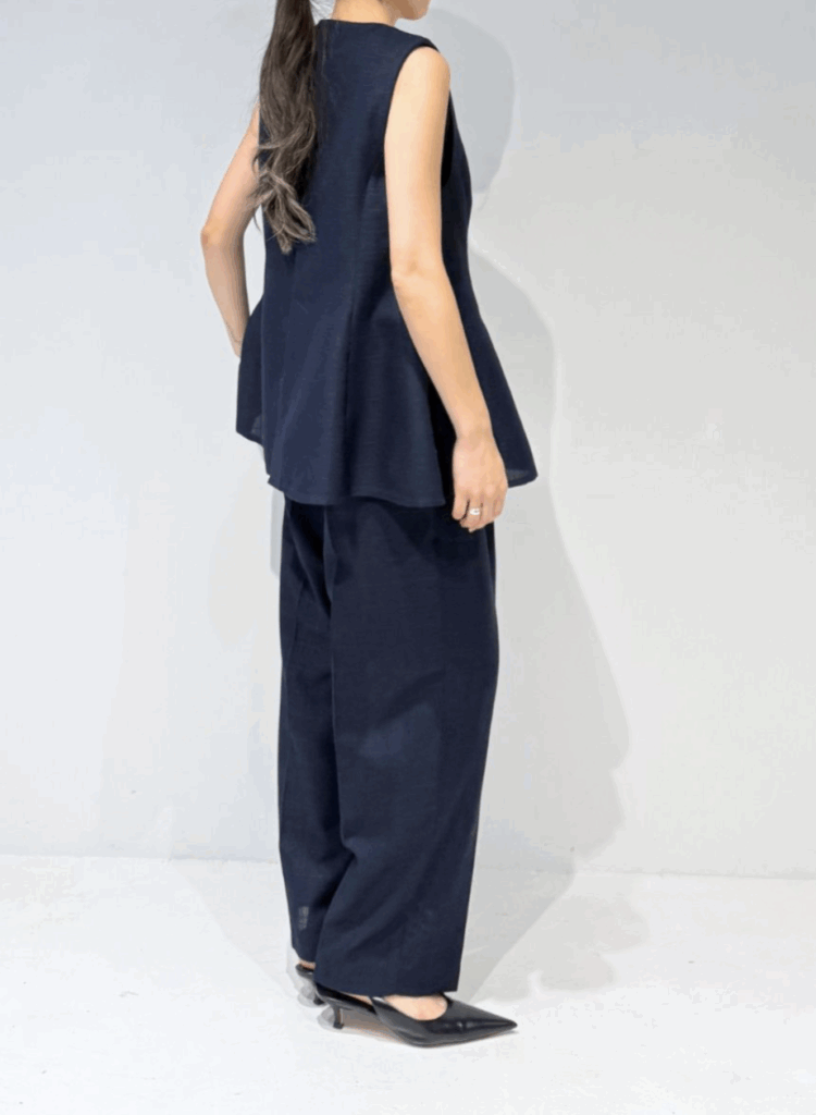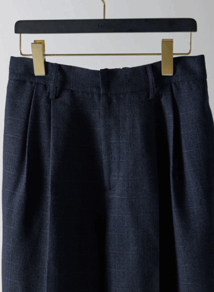 ワントーンで織り上げた、表情豊かなスクエア調サマーツイード素材の2タックパンツ。立体感のある生地が、シンプルな装いにも奥行きを与え、上品な存在感を演出します。さまざまなトップスと合わせやすい、2タック入りのワイドストレートシルエットで、程よく体のラインを拾わないバランスに。フロントはベルトまわりをすっきりと仕上げ、バックウエストはゴム仕様で快適な穿き心地を叶えました。後ろ姿をきれいに見せるポケット付きで、実用性にも配慮。同素材のジレやブラウスと合わせたセットアップスタイルはもちろん、スニーカーとも好相性で、きれいめからカジュアルまで幅広いスタイリングを楽しめる一本です。
