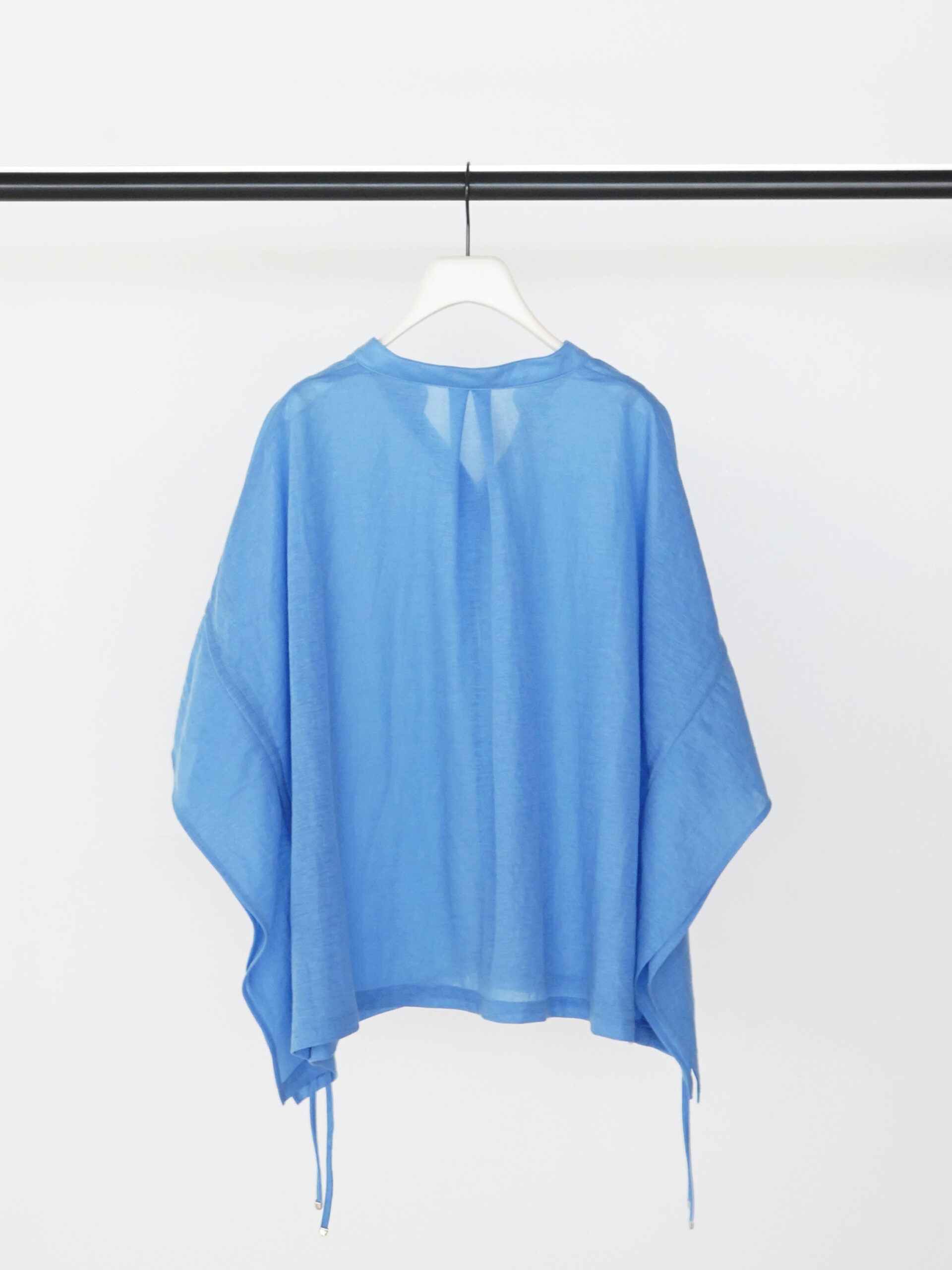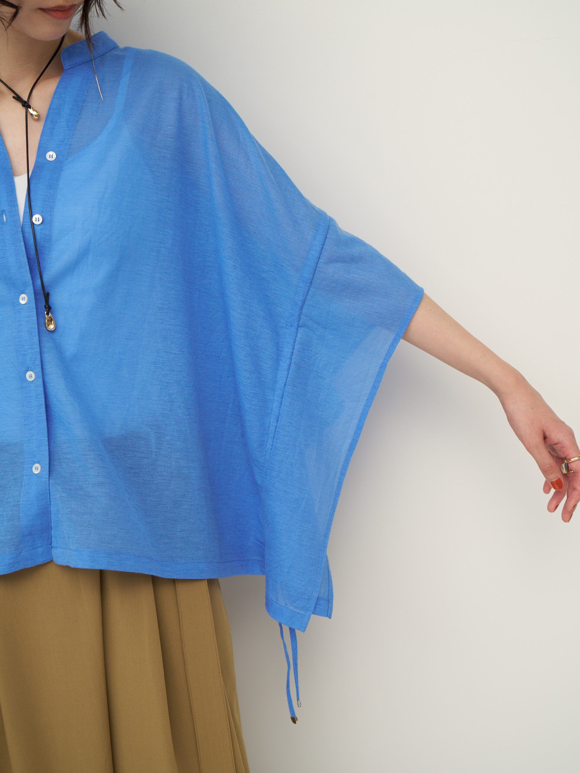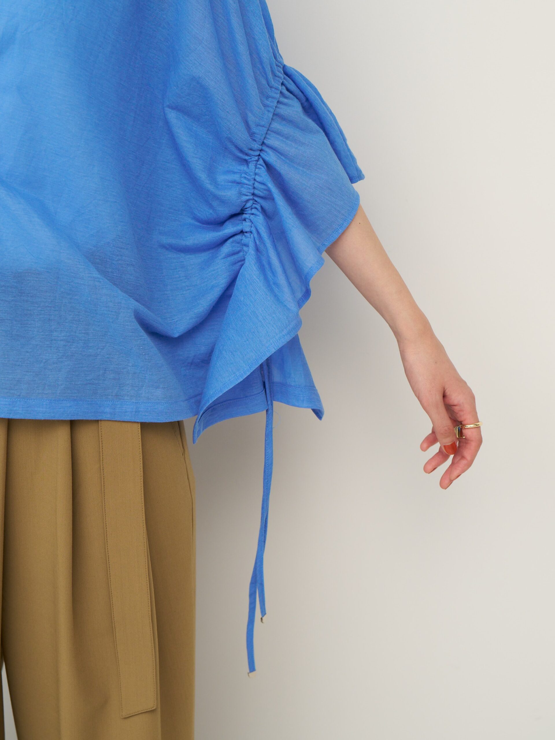 サイドの紐を絞って頂くと、ふらしている袖口部分ににフレアが入り、半袖のブラウスを着ているようなシルエットに変わります。