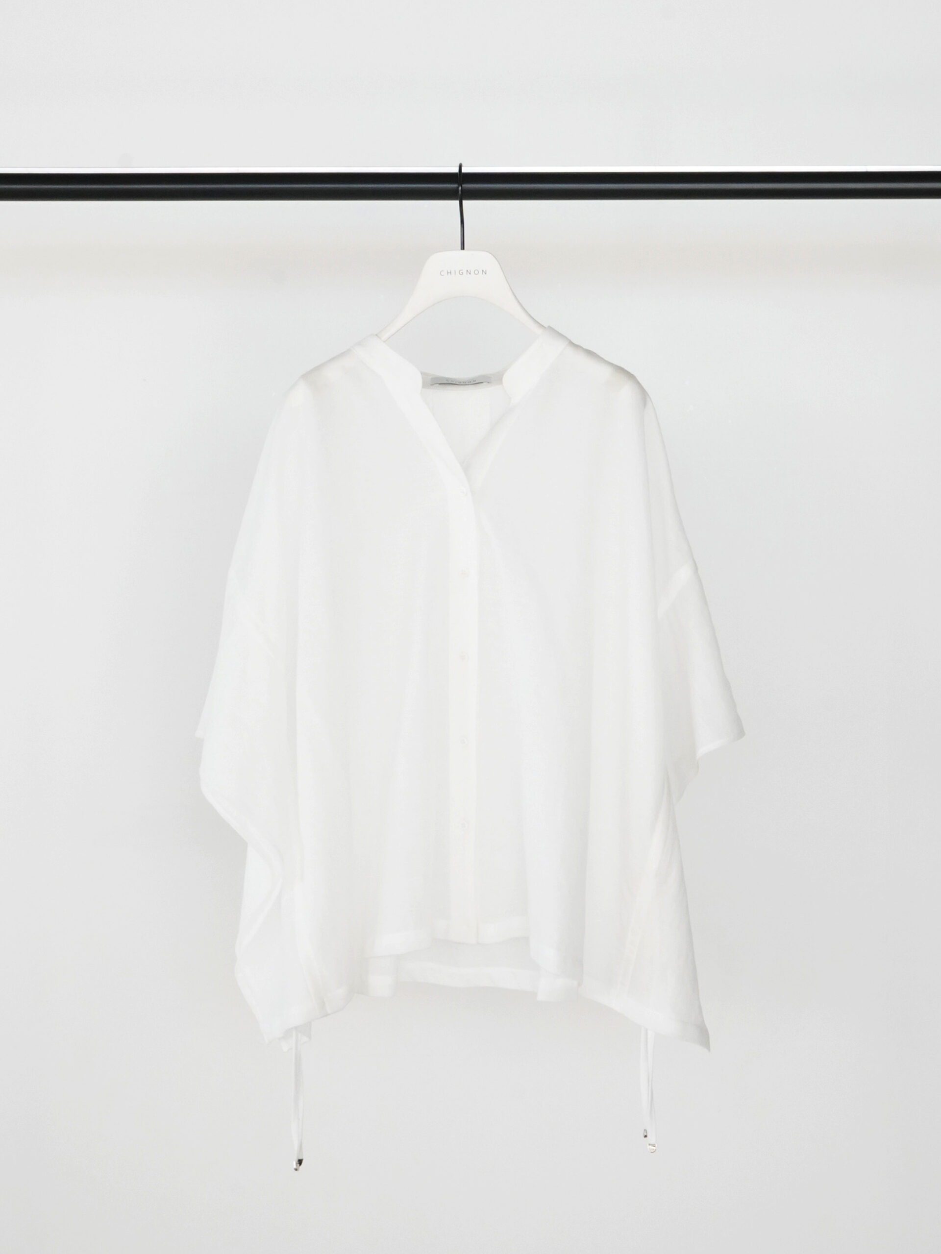 CHIGNONで毎年好評の綿混とナチュラルなシワ感素材で作った、ボックスシルエットブラウス。