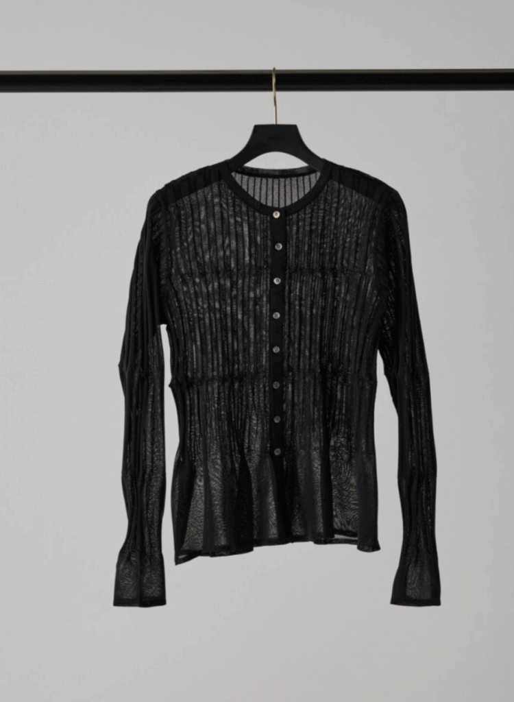 「軽やかさとモード感を纏う、シアーニットカーディガン。」