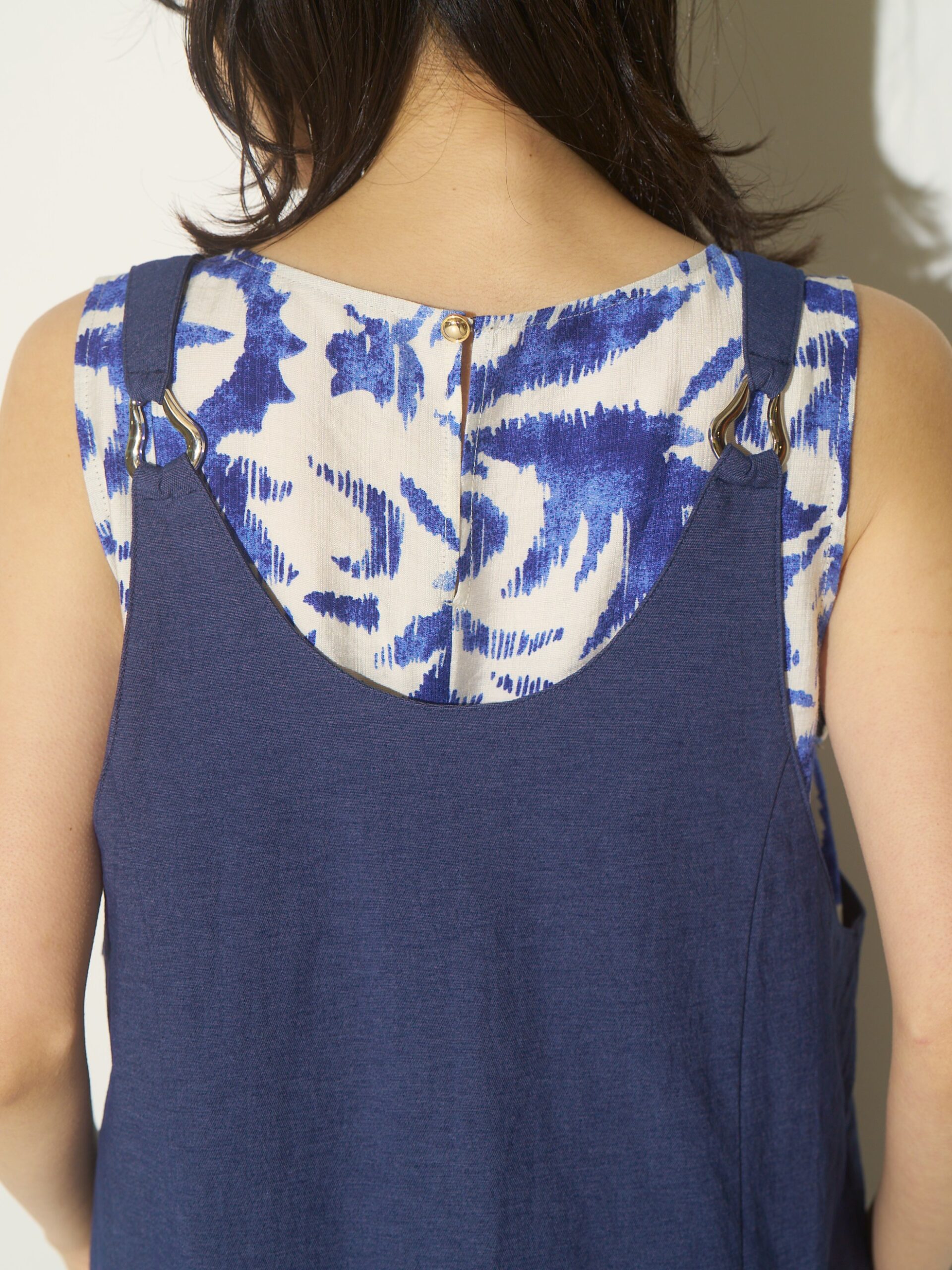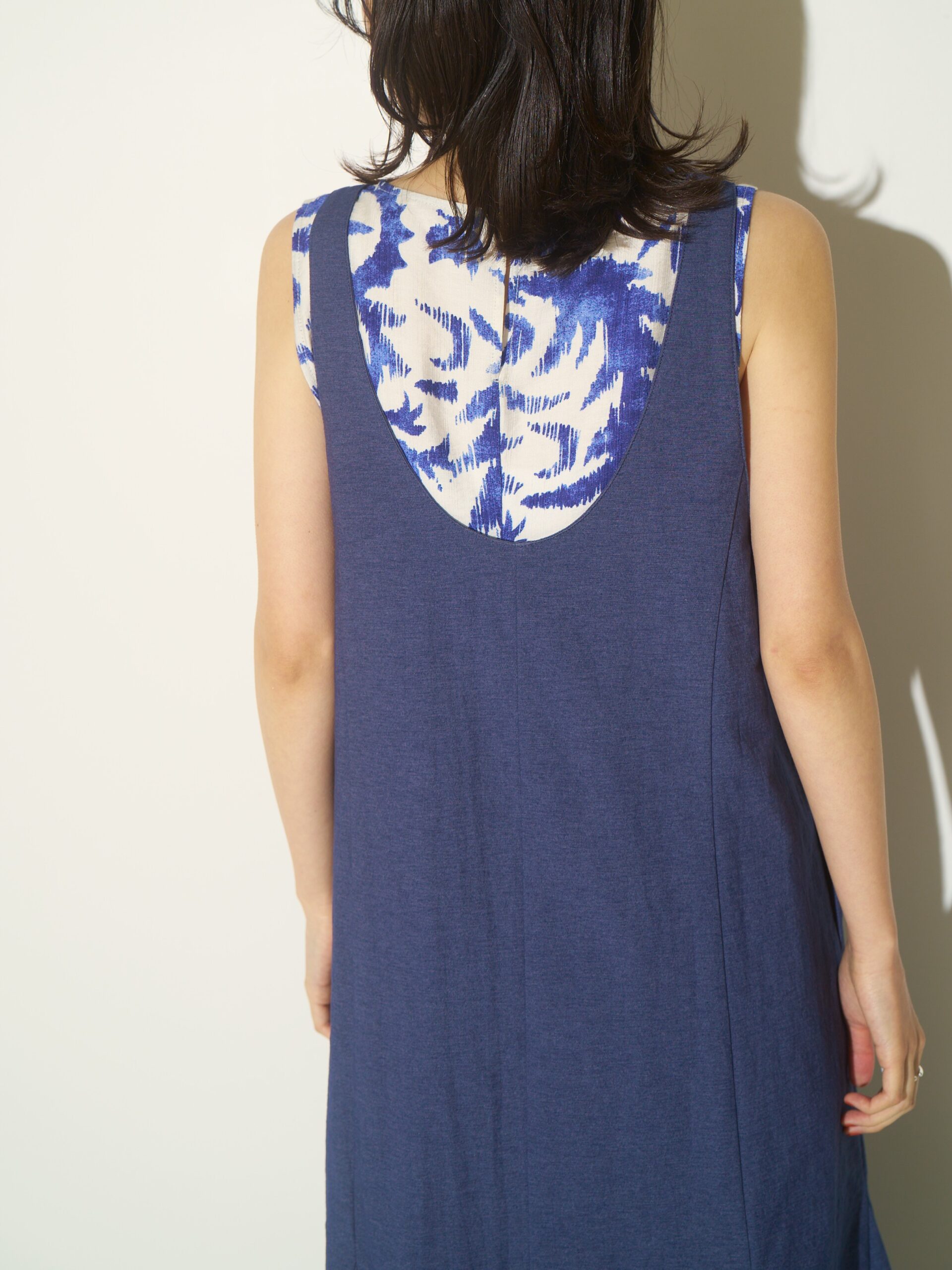 リネンのようなナチュラルな風合いが大人の雰囲気を演出する、ノースリーブワンピース。