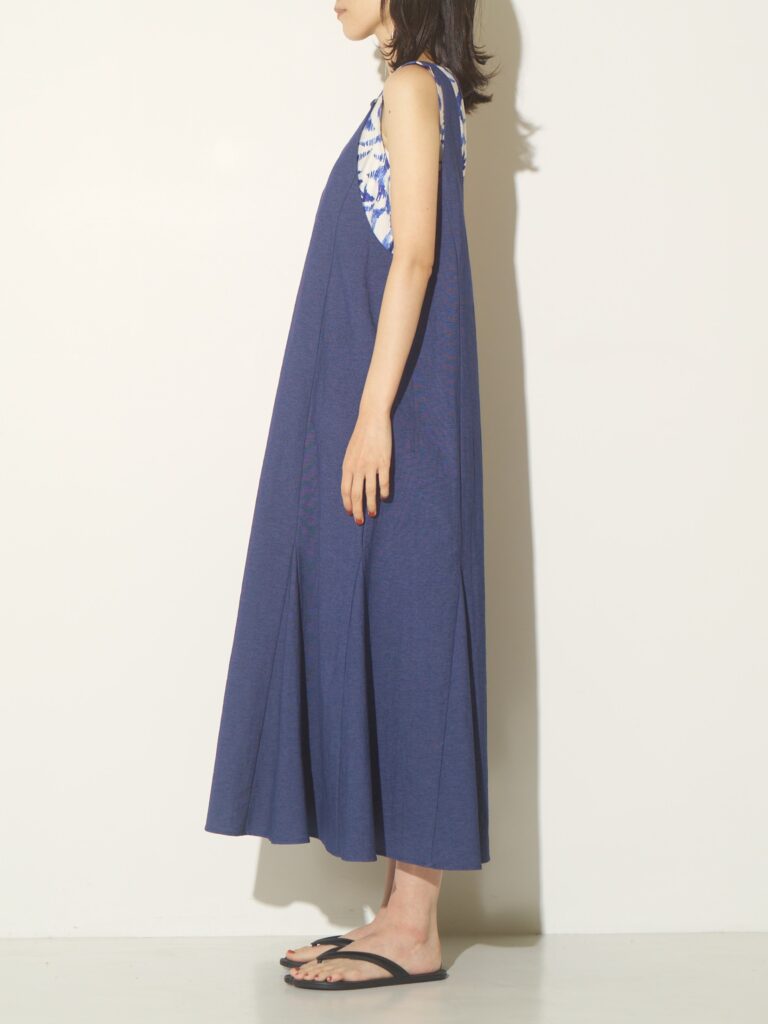 アームホールとネックラインはゆとりのあるデザインで、インナーとのレイヤードも楽しめる一着です。