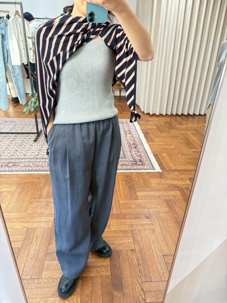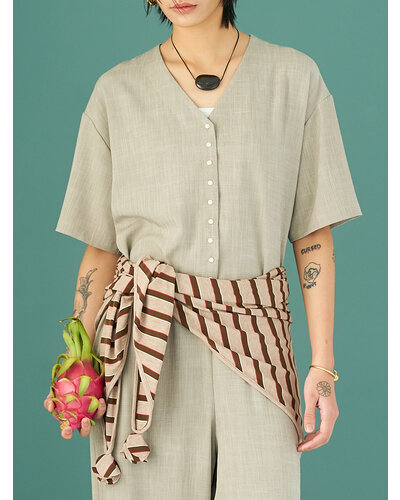肩に巻いて冷房対策に、腰に巻いてトレンド感のあるスタイリングに、ありそうでなかったカットソーのプラスワンアイテムはシンプルな夏のスタイルに重宝する1枚です。