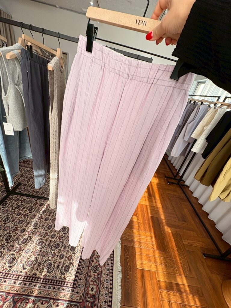 ★ シアー素材のストライプ生地を使用したイージーパンツです。