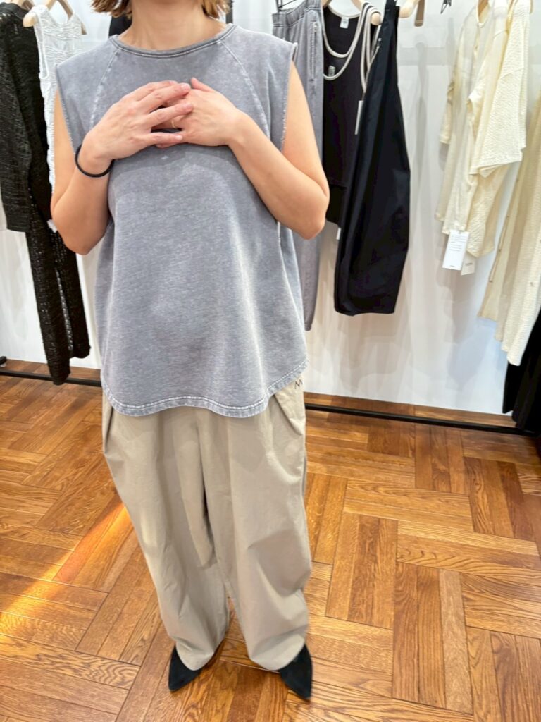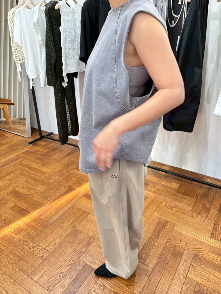 同素材のSLEEVELESS SHIRTとのセットアップも可能です。