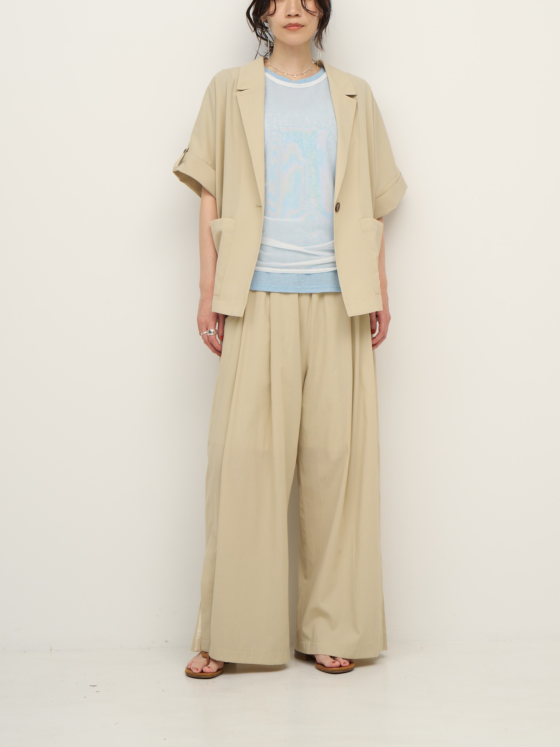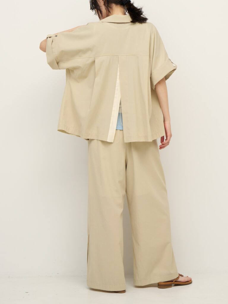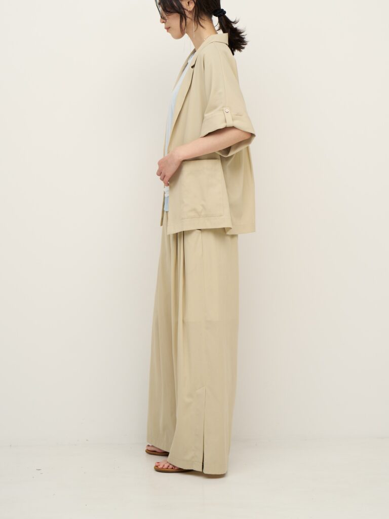 ゆったりとしたサイズ感でもすっきりと見えるように、裾を少しだけ狭め、ヘムラインも前側を長めにするなど、絶妙なバランス感に拘りました。
