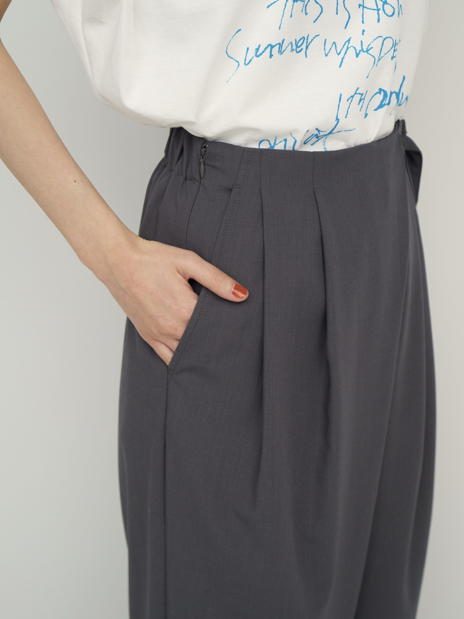 サマートロピカルのような梳毛調の平織り素材を使用。軽くてシワになりづらいしなやかさ、繊細な表面感と深みのある色合いが魅力的です。