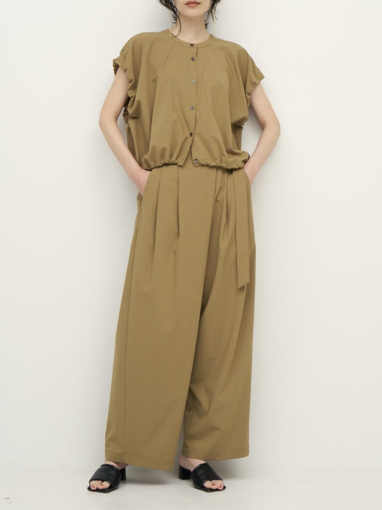 ベルトを見せるタックインスタイルがおすすめですが、生地が軽くウエスト周りがもたつかない設計なので、チュニックなど長め丈のトップスと合わせてもバランスよく履いていただけます。