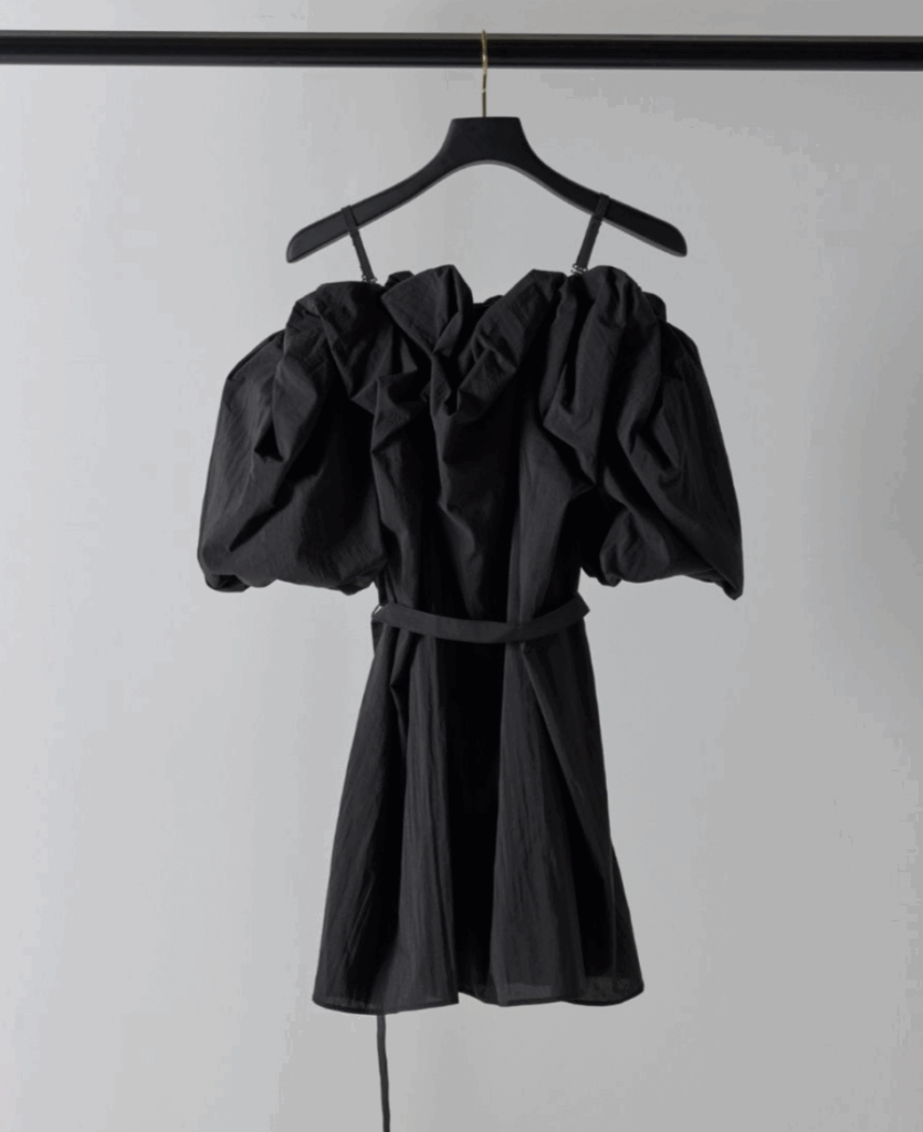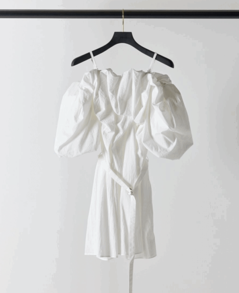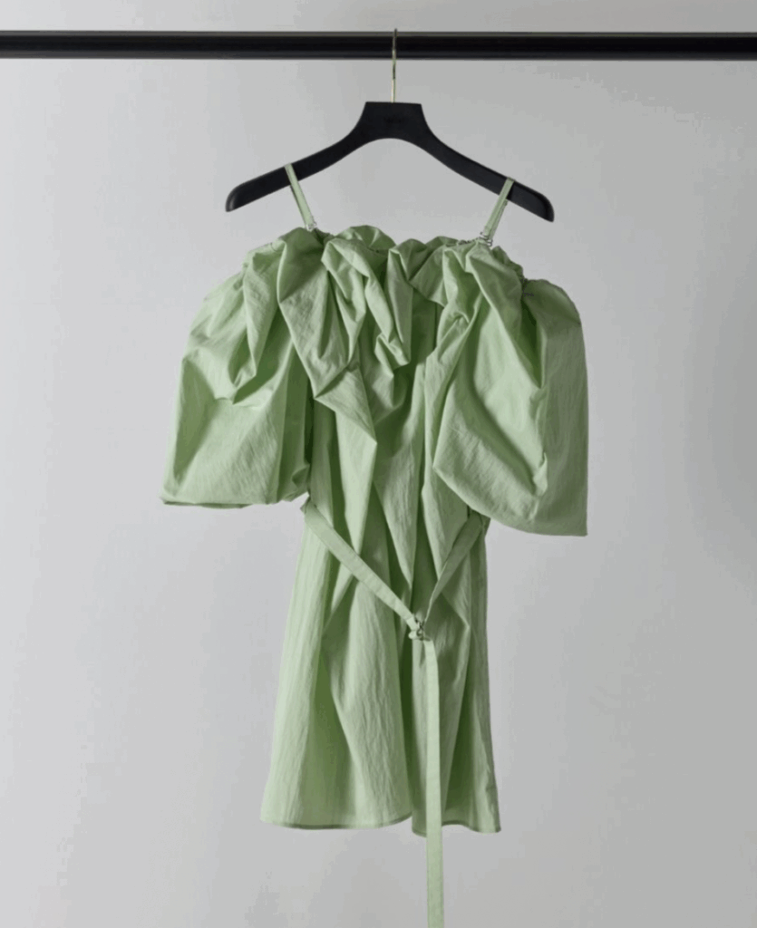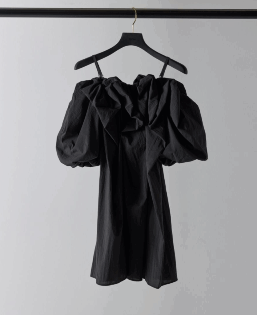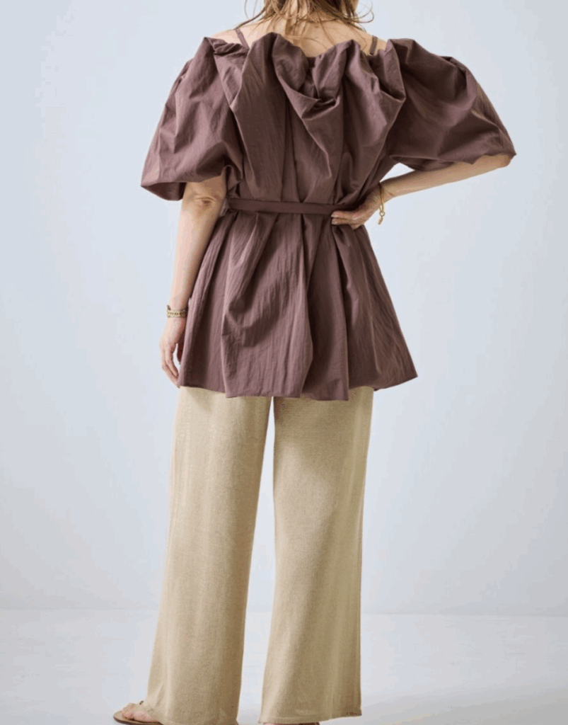 ゴム入りの仕様で、オフショルとしても、肩を出さないボートネックとしても着用可能。